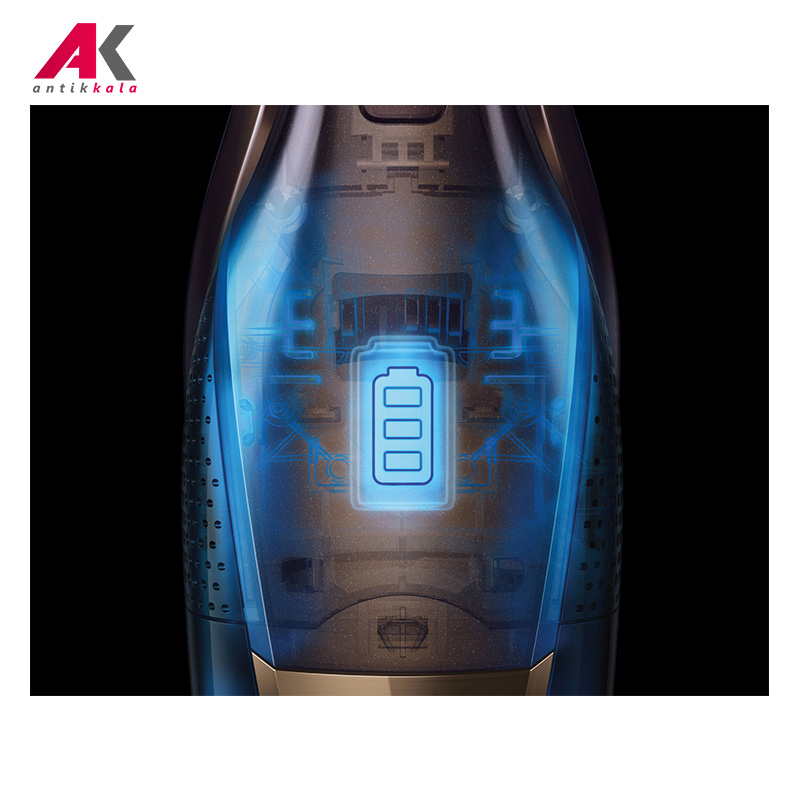 جاروشارژی آاگ مدل AEG CX7-2-35O، دو کاربرده است که هم به صورت دستی و هم به صورت ایستاده و بدون نیاز به نگهدارنده کاربرد دارد. این ویژگی خاص، باعث میشود دسته به راحتی از بدنه اصلی جدا شود و به این ترتیب، انعطافپذیری دستگاه افزایش مییابد و امکان استفاده از این مدل در سطوح مختلف با قدرت مکش 17.5 وات فراهم میشود. نوع طراحی ارگونومیک نازل، به گونهای است که برس آن با زاویه 180 درجه طراحی شده و میتواند در تمام جهات بچرخد و به راحتی در اطراف پایههای میز و صندلی جابهجا شود و به این صورت میتوانید راحتتر، با زحمت کمتر و سرعت بالاتری، نظافت محیط را تا حداکثر 2.92 کیلومتر انجام دهید و به دلیل وجود فن موتور قدرتمند، تجربهای عالی برای شما ایجاد میکند. این مدل، در سرعت نرمال به میزان 35 دقیقه و در سرعت بالا 13 دقیقه فعالیت میکند و میزان صدایی که در حین کار از این مدل تولید میشود، 79 دسیبل است. باتری این نوع جاروشارژی، از نوع لیتیوم-یون با ولتاژ 18 ولت است، باتری این دستگاه، به مدت 4 ساعت به طور کامل شارژ شده و به مدت 35 دقیقه شارژدهی دارد، تعداد چراغهای ال ای دی ميزان شارژ را نشان خواهد داد و از این طریق، شما از کم بودن و یا کامل بودن شارژ آگاه میشوید. برای داشتن عمکلرد بهتر باتری،CX7 را پيش از اولين استفاده 24 ساعت شارژ کنيد. جاروشارژی آاگ مدل AEG CX7-2-35O، با داشتن نازل مخصوص، قابلیت تمیز کردن مکانهای باریک را دارد. بهعلاوه؛ از طریق نور LED موجود در جلوی نازل (برس) آن، ریزترین زبالهها، در معرض دید قرار میگیرد و برای مشاهده مکانهای تاریک مانند زیر میز نیز کاربرد دارد و زمانیکه موها و کرکها از بین نمیروند با توجه به دارا بودن سیستم BRUSHROLLCLEAN، میتوانید با فشار دادن پدال و نگهداشتن آن به مدت 5 ثانیه، کرکها را از بین ببرید و اگر احتمالا درون برس، مو و کرک باقی مانده باشد، این فرآیند را مجددا تکرار کنید تا کاملا مو و کرک حذف شود، به علاوه؛ وجود فن موتور قدرتمند، قدرت تمیزکنندگی دستگاه را افزایش میدهد. این مدل، مجهز به مخزن 500 میلیلیتر است و میتوانید فیلتر دوگانه را از محفظه جدا کرده و محتویات آن را تخلیه کنید، فیلتر این جارو هم مانند بسیاری از مدلهای دیگر قابل شستوشو است.