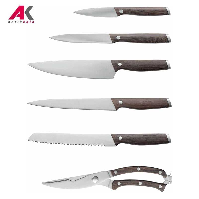 چاقوی آشپزی 20 سانتیمتر ,چاقوی پوست کن 8.5 سانتیمتر ,چاقوی گوشت 20 سانتیمتر ,چاقوی نان 20 سانتیمتری ,چاقوی همه کاره 12 سانتیمتر |