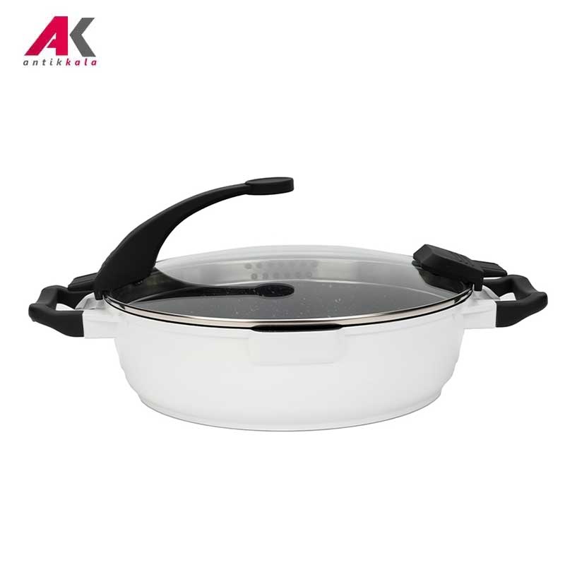 برخورداری از شیار برای تخلیه آب بدون برداشتن درب ,توجه: به توصیه شرکت تولید کننده شستشو به صورت دستی، با آب گرم و به وسیله اسفنج یا پارچه نرم انجام گیرد ,فاقد مواد شیمیایی PFAS و PTFE در ساخت |