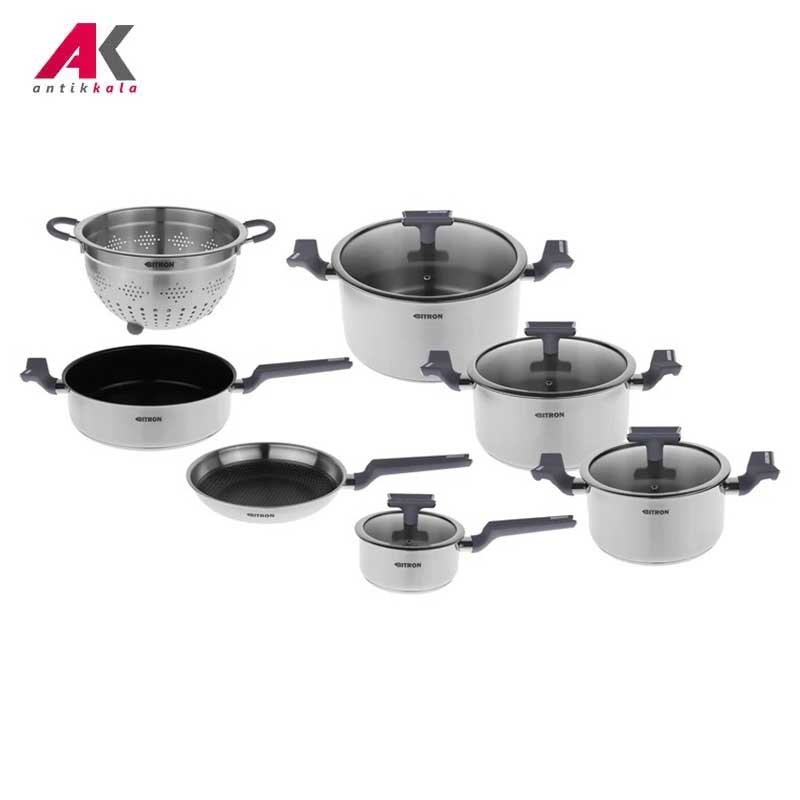 جنس داخلی تابه ها: سرامیک و گرانیت لیزری ,جنس داخلی قابلمه ها: استیل با پوشش چدن |