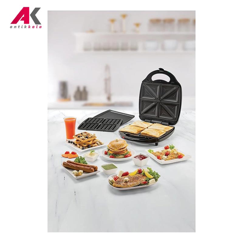 پخت ساندویچ مربعی یا مثلثی شکل ,تهیه وافل ,گریلکردن مواد غذایی مانند گوشت همبرگر، فیله مرغ و استیک |