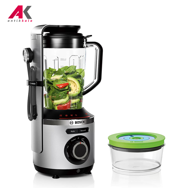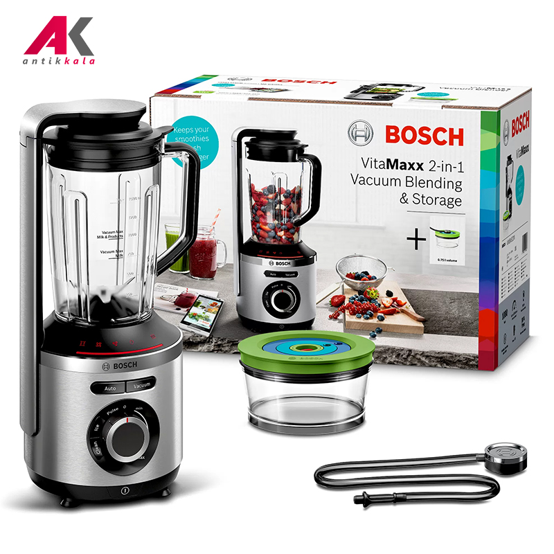 مخلوط کن بوش مدل BOSCH MMBV622M، با توان مصرفی 1000 وات و گردش 37000 دور در دقیقه، دستگاهی قدرتمند به منظور انجام عملکرد اختلاط مواد غذایی و از سری VitaMixx این برند است. مقادیر سرعت دستگاه متغیر بوده که بسته به نوع عملکرد و میزان دلخواه شما توسط کنترلر چرخشی قابل تنظیم میباشد. تعبیه یک تیغه 6 پره از جنس استیل ضد زنگ عملیات ترکیب کردن انواع مواد غذایی را به بهترین شکل ممکن انجام میدهد. در اغلب مواقع اسموتیها پس ار ترکیب شدن، رنگ، بافت و خواص خود را از دست میدهند. اما این مخلوط کن با اعمال تخلیه هوا از محفظه پارچ با استفاده از درپوش موسوم به Vacuum، از ایجاد اکسیداسیون و در نتیجه از دست رفتن طعم و خواص مواد مغذی نوشیدنی جلوگیری میکند. بنابراین اسموتیهای تهیهشده با مخلوط کن 622M بوش، دارای ماندگاری ویتامینها تا 24 ساعت و 5 برابر سایر مدلهای بدون برخورداری از این فناوری میباشد. این امر نگهداری مواد غذایی در داخل دیگر ظرف دستگاه را نیز تا میزان 2 برابر به نسبت دیگر مخلوط کنها افزایش میدهد. تعبیه 4 برنامه اتوماتیک بر روی پنل دستگاه با رابط کاربری آسان علاوه بر ویژگی وکیوم، امکاناتی همچون خرد کردن یخ و برنامه مربوط به نظافت را نیز در اختیار شما قرار میدهد. پس از هر بار انجام فرایند با فشردن دکمه Clean تا حدودی قادر به نظافت پارچ مخلوط کن خواهید بود. با این حال امکان شستشوی قطعات مخلوط کن در ماشین ظرفشویی را نیز خواهید داشت. ظروف دستگاه شامل یک پارچ 1.5 لیتری از جنس تریتان و ظرف نگهداری مواد غذایی به ظرفیت 0.75 میباشد که هر دو ظرف با دارا بودن قابلیت وکیوم و همچنین عاری بودن از ماده مضر شیمیایی BPA کیفیت و سلامت نوشیدنی و یا مواد غذایی را تضمین میکنند.