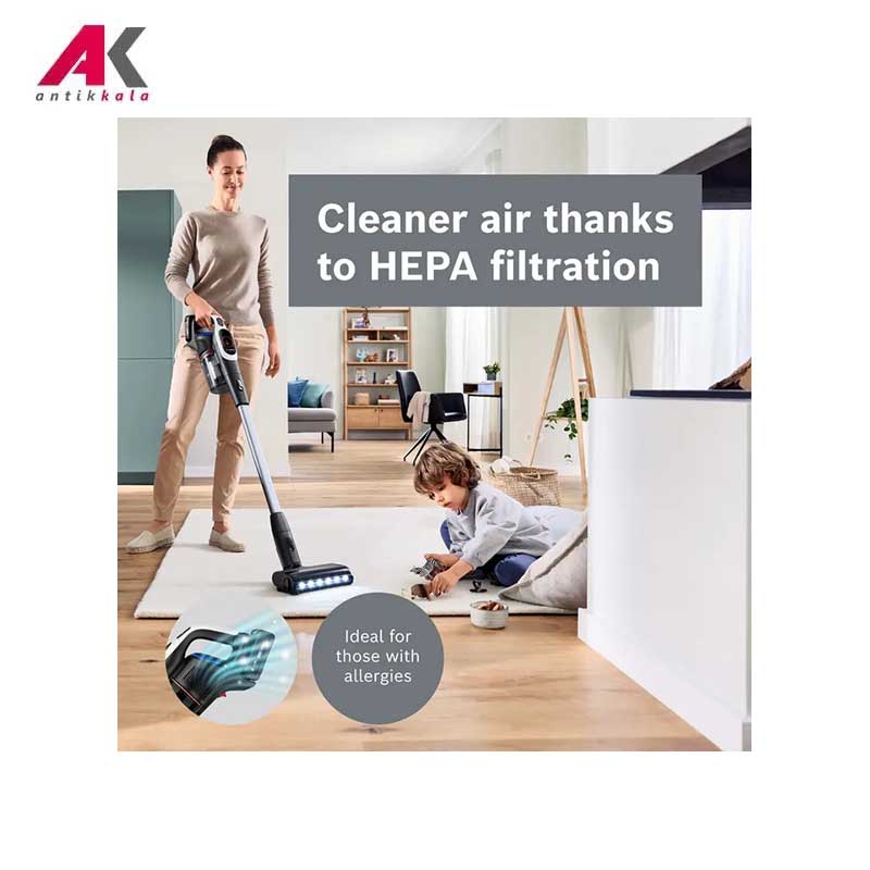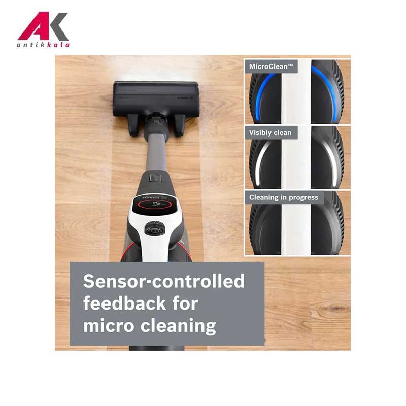 فناوری فناوری MicroClean: برخورداری از حسگر تشخیص ریزترین ذرات آلودگی (آبی شدن رنگ حلقه نور دور دسته جاروشارژی نشان دهنده تمیزی کامل محیط موردنظر است) |