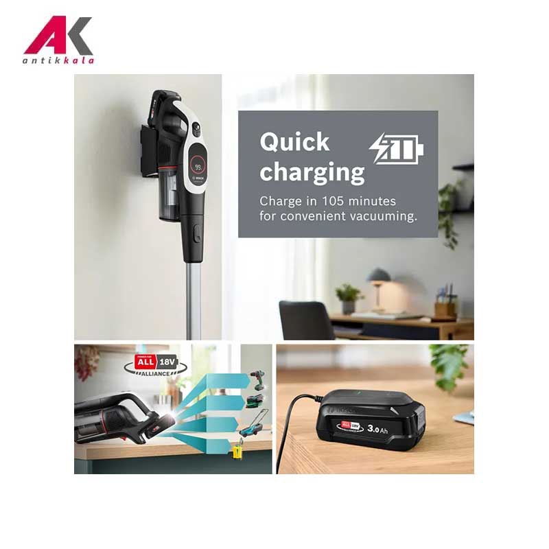 1 عدد باتری قابل جایگزین ,آداپتور شارژر ,پایه شارژر ,نازل بلند مخصوص درزها، گوشه ها و مبلمان ,نازل شکاف و گوشه ها ,نازل مخصوص مبلمان ,شارژ سریع با قابلیت شارژ باتری در 105 دقیقه |