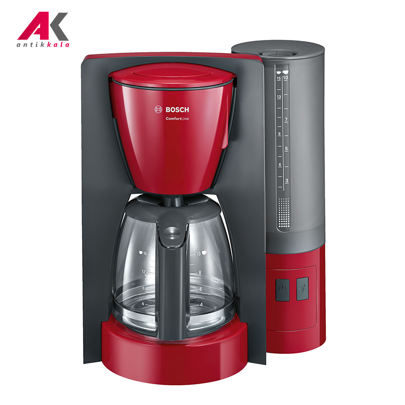 قهوه ساز بوش مدل BOSCH TKA6A044 با طراحی خاص و شیک و کارایی توانمند یک انتخاب مناسب جهت تهیه نوشیدنی قهوه به طور روزمره برای شما محسوب میشود. این قهوه ساز قدرتمند به لطف برخورداری از توان 1200 واتی بههمراه سیستم گرمایشی بهمنظور تنظیم بهینه رایحه قهوه، شرایط ایدهآل برای تهیه نوشیدنی قهوه را به آسانی در اختیار شما قرار میدهد. لازم نیست دوز متفاوتی از آسیاب قهوه را در اختیار داشته باشید؛ برای تنظیم میزان رایحه و طعم نوشیدنی تنها با فشردن دکمه +Aroma، دستگاه با کنترل جریان آب جهت انجام فرایند دم آوری، با تشدید طعم و رایحه نوشیدنی به میزان موردنظر بهترین نتیجه را ارائه میدهد. مخزن آب 1.25 لیتری قهوه ساز بوش TKA6A044 به آسانی قابل تفکیک و پر کردن زیر شیر آب خواهد بود؛ بنابراین شما احتیاج به استفاده از شیشه آب به صورت مجزا پیدا نمیکنید. با بهرهگیری از عملکرد DripStop جابجایی قوری بدون چکیدن حتی یک قطره از نوشیدنی بر روی محیط اطراف قرارگیری قهوه ساز به انجام میرسد. با وجود امکان بهرهگیری از فیلتر کاغذی چرخشی قابل تعویض قادر خواهید بود در اسرع وقت و به آسانی در ابتدای هر صبح برای وعده صبحانه خود قهوه تهیه کنید. برخورداری دستگاه از عملکرد EasyDescale3 با تنظیم میزان سختی آب و اعمال هشدار جهت انجام فرایند رسوب زدایی، این عملکرد به طور منظم از طریق دستگاه انجام میشود که این موضوع موجب حفظ کیفیت و طول عمر استفاده از قهوه ساز خواهد شد. برخورداری از محفظه سیم جمع کن، قابلیت شستشوی آسان قطعات پس از هربار انجام فرایند و نیز عدم استفاده از ماده مضر شیمیایی BPA در ساخت بخشهای پلاستیکی دستگاه دیگر ویژگی قهوه ساز بوش TKA6A044 به شمار میآید. لازم به ذکر است دستگاه در پس از گذشت زمانهای 20، 40 و 60 دقیقهای، بنا به تنظیمات اعمال شده به طور خودکار خاموش میشود.