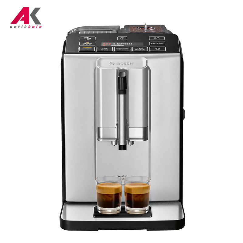 اگر به دنبال دستگاهی کارا برای تهیه روزمره نوشیدنی محبوب خود با ظاهری جمعوجور و درعینحال خوشترکیب هستید اسپرسوساز بوش مدل BOSCH TIS30321RW گزینهای مناسب برای شما خواهد بود. به کمک این دستگاه میتوانید از ابتداییترین مراحل فرایند یعنی آسیاب دانههای قهوه تا تهیه نوشیدنی مدنظر خود را به آسانی و در اسرع زمان به انجام برسانید. توان مصرفی این اسپرسوساز 1300 وات، حجم مخزن آب آن 1.4 لیتر، ظرفیت مخرن قهوه 250 گرم و میزان فشار بخار آن 15 بار است. اما نکته حائز اهمیت این اسپرسوساز در عملکرد تمام اتوماتیک دستگاه است. قابلیت آسیاب قهوه با بهره گیری از سیستم CeramDrive با جنس سرامیک مقاوم در برابر سایش، شما را در تهیه پودر قهوه ای باکیفیت و با حفظ عطر و بوی اصلی آن یاری خواهد کرد. این فرایند به میزان دلخواه شما قابل تنظیم خواهد بود. طعم لذتبخش قهوه حاصل دم آمدن آن در دمای مناسب است؛ وجود فناوری SensoFlow از طریق حرارتدهی با دمای ایدهآل و یکنواخت در سطح اسپرسوساز TIS30321RW قهوه ای با بهترین طعم و عطر ممکن را دم خواهد آورد. همچنین با توجه به قابلیت تولید کف شیر، امکان تهیه نوشیدنیهایی با مشتقات شیر و قهوه از جمله کاپوچینو و لاتهماکیاتو نیز مهیا است که با برخورداری از سیستم One-Touch Preperation تعبیه شده در پنل دستگاه آمادهسازی انواع نوشیدنی تنها با لمس یک کلید، قابل انجام است. این پنل علاوه بر دکمههای مربوط به خاموش و روشن کردن دستگاه و میزان غلظت قهوه، شامل نوشیدنیهایی اعم از اسپرسو، قهوه، کاپوچینو، کفشیر و لاتهماکیاتو نیز خواهد بود. اطلاعات مربوط به تنظیمات در نمایشگر LCD اسپرسوساز قابل مشاهده است. وجود سیستم MilkMagic Pro موجب شده تا در هنگام تهیه کاپوچینو، کف شیر به میزان کافی به عمل آمده و از سرریز شدن آن از فنجان جلوگیری شود. علاوه بر این وجود قابلیت IndividualCup Volume امکان تنظیم جداگانه حجم قهوه با اندازه هر فنجان را به آسانی مهیا میکند. فیلتر BRITA Intenza با جلوگیری از ایجاد رسوب در مخزن آب، علاوه بر حفظ طول عمر دستگاه موجب حفظ و بهبود طعم اصلی قهوه خواهد شد (لازم به ذکر است این فیلتر جزء اقلام اصلی داخل جعبه دستگاه نبوده و در صورت تمایل به استفاده از آن میبایست به صورت مجزا تهیه شود). نازل خروجی قهوه و کف با استفاده از قابلیت تغییر ارتفاع، استفاده از لیوان تا حد اندازه 15 سانتیمتر را امکان پذیر میکند. قابلیتهایی نظیر SinglePortion Cleaning که تخلیه کامل لولهها بعد از هر بار دمآوری را به همراه دارد، سیستم اتوماتیک Calc’nClean برای رسوبزدایی و نظافت دستگاه را در سریعترین زمان ممکن تسهیل میبخشد. لازم به ذکر است سینی چکه گیر و ظرف تفاله اسپرسوساز بوش مدل BOSCH TIS30321RW با قابلیت تفکیک آسان، امکان شستشو در ماشین ظرفشویی را نیز خواهند داشت.