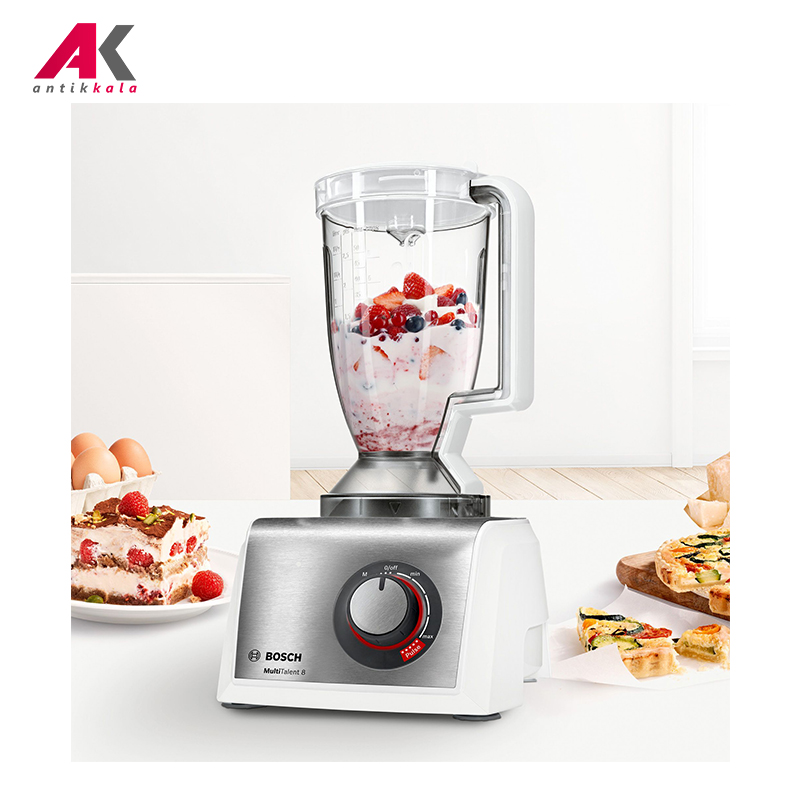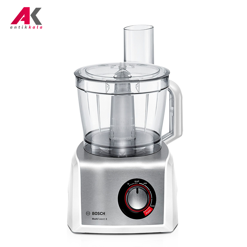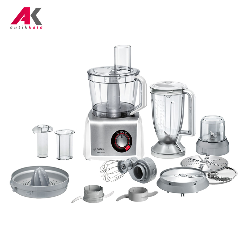غذاساز بوش مدل BOSCH MC812S844 دستگاهی خوش طراحی و ترکیب و توانمند در جهت انجام فعالیتهای روزمره و تهیه انواع ترکیبات غذایی از سری MultiTalent 8 است. آشپزخانه شما بی شک نیازمند وسیله یا وسایلی است که بتواند شمارا در تهیه انواع ترکیبات غذایی روزمره و ضروری در سریعترین زمان ممکن یاری کند. غذاساز چندکاره یکی از این کالاها است که در قالب یک پکیج شامل چندین عملکرد انواع نیازهای شما را مرتفع میسازد. دیگر ویژگی مثبت غذاساز چندکاره 812S844 بوش این است که با خرید آن در فضای آزاد آشپزخانه شما صرفهجویی خواهد شد. همچنین با مقایسه قیمت غذاساز به نسبت عملکردها بهصورت تکبهتک و مجزا، پی خواهید برد که خرید این دستگاه کاملاً مقرونبهصرفه است. توان موتور 1250 واتی این دستگاه با قابلیت تنظیم در سه سرعت یکسره، متغیر و پالس، تهیه انواع مواد غذایی برای دستیابی به بهترین نتیجه ممکن را میسر کرده است. برخورداری از عملکرد Pulse با استفاده از حداکثر توان موتور دستگاه موجب شده انجام فرایند بر روی سرسختترین مواد غذایی برای ایجاد ترکیبی یکنواخت و بدون اشکال بهآسانی صورت پذیرد. عملکردهای متنوع غذاساز MC812S844 بوش، از طریق اتصال پیوستهای متنوع انجام میشود؛ پارچ مخلوطکن 1.5 لیتری از جنس پلاستیک، 1 عدد آسیاب، کاسه غذاساز 3.9 لیتری، یک عدد ابزار خمیرزن، یک عدد آب مرکبات گیری، یک عدد ابزار همزن بالونی و در نهایت 3 دیسک مربوط به رنده مواد غذایی با 5 عملکرد متفاوت از جمله ابزارهای کاربردی این غذاساز چندکاره به شمار میآیند. کاسه غذاساز 3.9 لیتری، با امکان تهیه خمیر تا میزان 1.5 کیلوگرم، انتخابی مناسب برای یک خانواده پرجمعیت خواهد بود. تیغه بهکاررفته در این غذاساز چندکاره از جنس استیل ضدزنگ و فناوری پیشرفته Supercut عملیات برش انواع مواد غذایی را به بهترین شکل ممکن به انجام میرساند. تمام بخشهای پلاستیکی مرتبط با مواد غذایی در این غذاساز فاقد ماده شیمیایی مضر BPA بوده بنابراین ترکیبات تهیه شده دارای حداکثر سلامت و کیفیت ممکن است. در کنار طراحی جمعوجور و ارگونومیک این غذاساز که متناسب با چیدمان هر نوع دکوراسیون آشپزخانه است، به لطف وجود پایههای ضدلغزش که از حرکت دستگاه در حین فرایند جلوگیری کرده و همچنین تعبیه قفل درپوش، ایمنی انجام فرایند نیز تضمین میشود. تفکیک قطعات و امکان شستشوی آسان آنها پس از هر بار انجام فرایند دیگر امکان مهم غذاساز بوش مدل BOSCH MC812S844 بهحساب میآید.