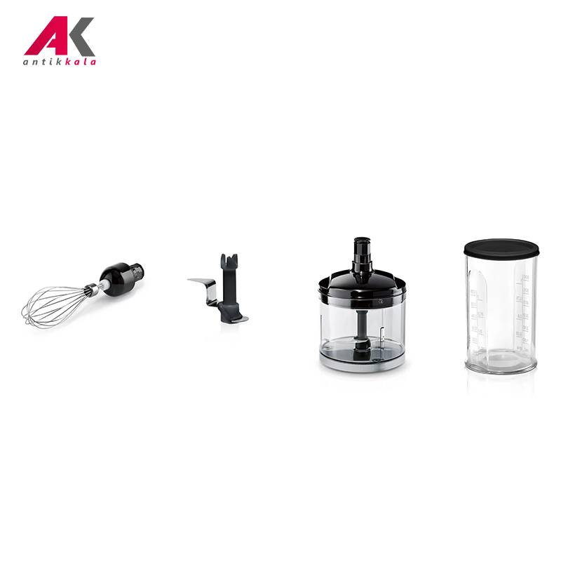 پیمانه شفاف درجه بندی شده برای مخلوط کردن به همراه درپوش ,خردکن کوچک مناسب سبزیجات، آجیل، پیاز، گوشت، پنیر و … ,همزن بالونی از جنس استیل ضد زنگ برای هم زدن سفیده تخم مرغ، خامه یا مخلوط کردن خمیر پن کیک ,یخ خردکن |