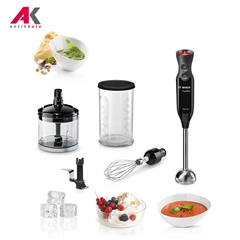 گوشت کوب برقی بوش مدل BOSCH MS61B6170، دستگاهی چندکاره با بهره گیری از موتور کم صدا و کم لرزش 1000 واتی یک انتخاب کاملا مناسب برای تکمیل آشپزخانه شماست. این دستگاه به لطف بهره گیری از موتور قدرتمند و لوازم جانبی متعدد طیف وسیعی از عملکردها از قبیل خردکن مواد غذایی مختلف، همزن بالونی برای هم زدن سفیده تخم مرغ و یا ورز دادن خمیر، مخلوط کن و یخ خردکن را در برمیگیرد. سرعت انجام فرایند گوشت کوب برقی MS61B6170 بوش در 12 درجه قابل تنظیم بوده که برای انجام فرایند بر روی مواد غذایی سخت دکمه سرعت turbo بر روی دستگاه تعبیه شده است. تیغه های فوق العاده تیز و بادوام 4 لبه موسوم به QuattroBlade گوشت کوب برقی عملکرد اختلاط و کوبیدن حتی برای سخت ترین مواد غذایی را به راحت ترین صورت ممکن مهیا میکند. عملکرد AntiSplash دستگاه از پاشش مواد غذایی به خارج از دستگاه جلوگیری کرده و موجب حفظ تمیزی فضای آشپزخانه میشود. طراحی خوش دست و ارگونومیک و ضد لغزش دسته گوشت کوب برقی با بهره گیری از دکمه های بزرگ، تجربه ای لذت بخش را در استفاده از آن در اختیار شما قرار خواهد داد. مخزن لیوان مدرج 600 میلی لیتری گوشت کوب به لطف بهره گیری از درپوش این امکان را مهیا میکند که بعد از انجام فرایند، بتوانید مواد غذایی را داخل همین لیوان در یخچال نگهداری کنید. شستشوی گوشت کوب برقی MS61B6170 بوش به لطف تفکیک آسان پایه از سری تنها با فشردن یک دکمه و همچنین جنس استیل آن، تنها در چند ثاینه و به راحتی قابل انجام است. همچنین عدم وجود ماده BPA در بخش های پلاستیکی در تماس با مواد غذایی در گوشت کوب برقی بوش مدل BOSCH MS61B6170 تهیه مواد غذایی امن و سلامت را تضمین میکند.