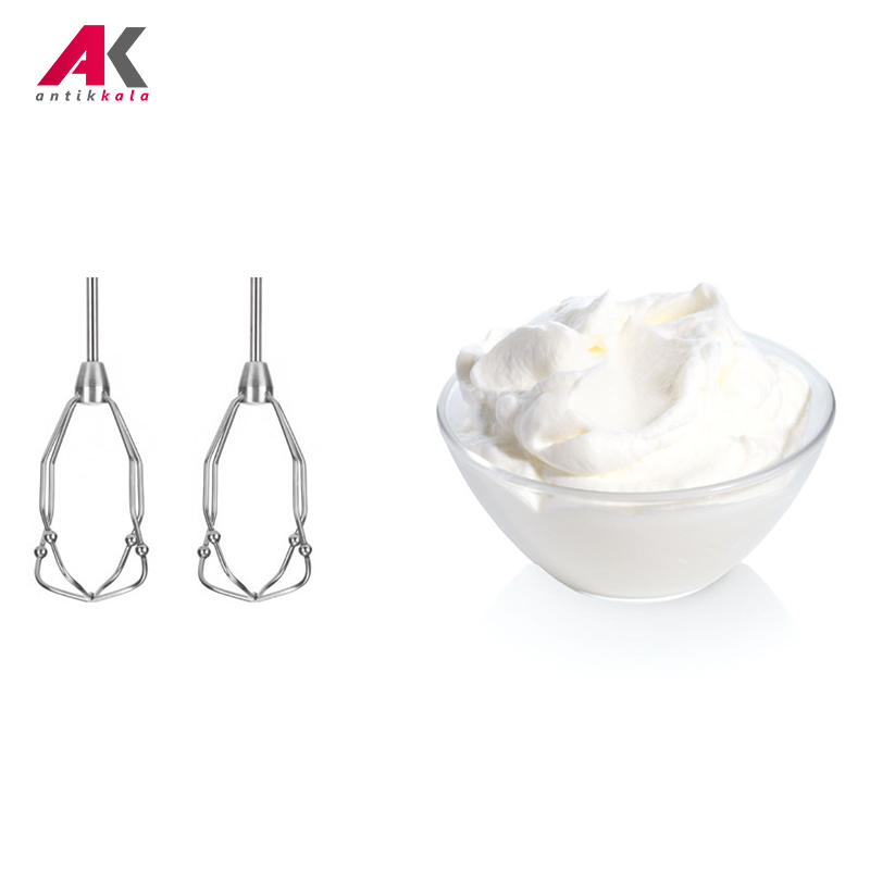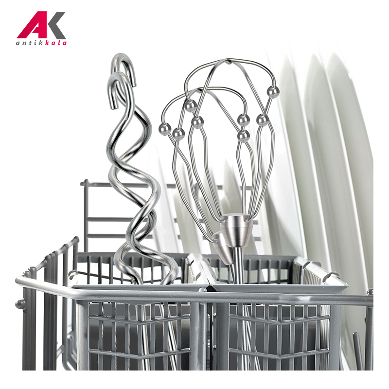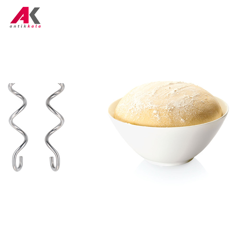 وجود دو میله همزن موسوم به FINE CREAMER از جنس استیل ضدزنگ کار کردن را برای شما آسانتر میکند. این میلهها بهگونهای طراحی شدند تا با استفاده از آن به مواد غذایی خود پف و حجم بسیار بیشتری را بدهید و به پخت ایدهآل مواد غذایی خود برسید. برخورداری از توپهای کوچک تعبیه شده در مکانیزم ساخت این میلهها موجب ایجاد هوای خالی داخل خمیر شده؛ بنابراین ترکیب داری حجم و پف بیشتری خواهد شد. علاوه بر این وجود دو قلاب استیل ضدزنگ بهمنظور سهولت در ورز دادن خمیر نان و پیتزا و ترکیبات چالشبرانگیز بهعنوان دیگر ابزار جانبی در این دستگاه تعبیه شده است. میلههای همزن و خمیرزن را به آسانی میتوان زیر شیر آب تمیز کرد و یا داخل ماشین ظرفشویی گذاشت تا با استفاده از آن قطعات شستشو داده شوند.