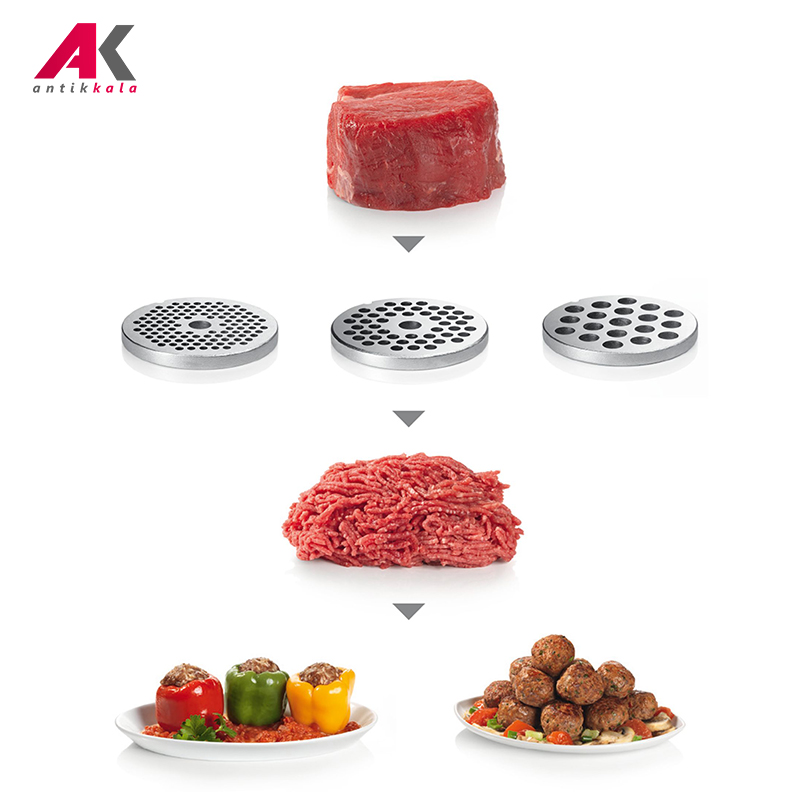 چرخ گوشت های پرقدرت بوش برای آماده کردن مواد غذایی به طور سریع و ایمن با بیش از 15 عملکرد متنوع و لوازم جانبی مختلف، انتخاب های مناسبی برای خرید یک چرخ گوشت خوب هستند. چرخ گوشت بوش مدل MFW68680 با توان 800-2200 وات، توانایی چرخ کردن 4.3 کیلوگرم گوشت در دقیقه را دارا می باشد. یکی از ویژگی های مهم این محصول داشتن سینی بزرگ و مناسب، همچنین محفظه ای برای جمع آوری سیم برق می باشد. شما می توانید با استفاده از چرخ گوشت های پرکاربرد بوش، انواع سوسیس خانگی و خوشمزه را به بهترین شکل ممکن برای اعضای خانواده تهیه نمائید. چرخ گوشت MFW68680 بوش مجهز به مجهز به سه شبکه ریز، متوسط و درشت برای چرخ کردن گوشت، رنده مخصوص برای خرد کردن به صورت نگینی و اسلایسر برای ورقه کردن و رنده کردن می باشد. یکی از مزیت های مهم چرخ گوشت MFW68680 داشتن قابلیت برش حرفه ای انواع میوه و سبزیجات می باشد که به وسیله قطعات مخصوص می توانید این کار را به راحتی انجام دهید. می توانید از کبه ساز این مدل چرخ گوشت برای تهیه کبه و از سوسیس ساز برای تهیه انواع سوسیس خوشمزه و خانگی استفاده نمائید. چرخ گوشت 68680 دارای یک محفظه مناسب برای نگهداری دیسک های مشبک نیز می باشد.