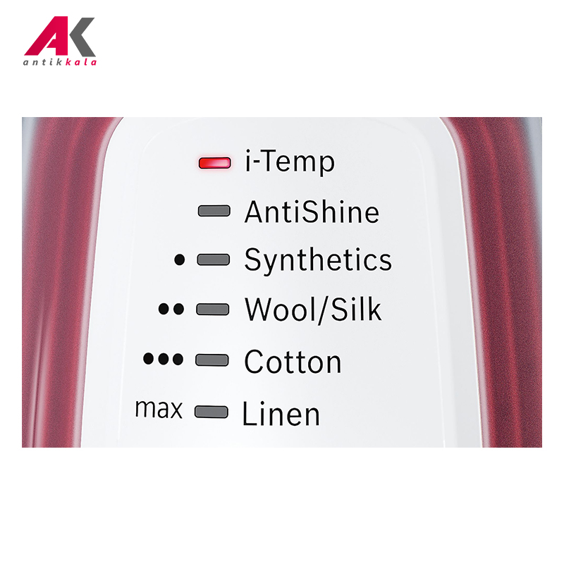 دماغه باریک اتو – سهولت در اتوکشی درزها و دکمه های لباس ,قابلیت i-Temp: تنظیمات حرارتی يکسان برای تمامی الیاف قابل اتوکشی ,قابلیت QuickFill : دهانه بزرگ برای سهولت و سرعت در پر/خالی کردن ,قابلیت TempOK : در هنگام گرم يا خنک كردن، نمایشگر TempOK با رسیدن به درجه تنظیم شده، علامت می دهد. |