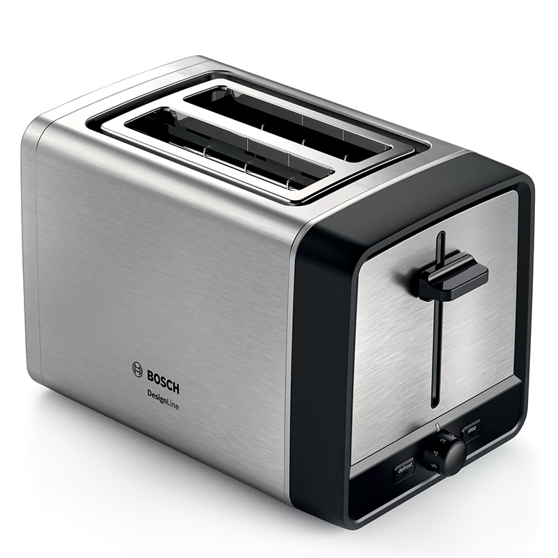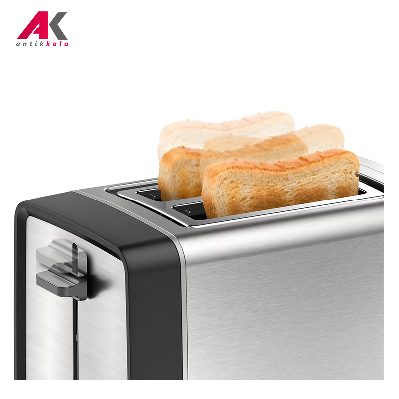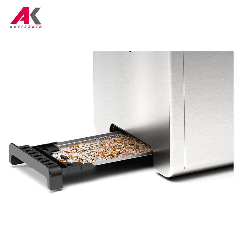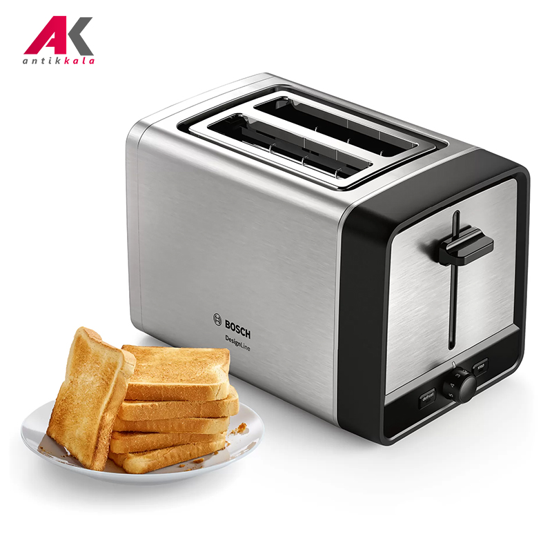 توستر بوش مدل BOSCH TAT5P420 دستگاهی با طراحی شکیل و البته بادوام، کاربری ارگونومیک و عملکردی قدرتمند گزینهای مناسب برای تهیه نان وعدهها و میانوعدههای شما محسوب میشود. مصرف بالای نان در وعدههای مختلف غذایی و نیاز به دسترسی سریع به آن موجب شده تا لزوم وجود توستر در هر محیط اعم از منزل و محل کار ضرورت پیدا کند. طراحی ساخت بدنه این توستر با بکارگیری متریال استیل و پلاستیک، علاوه بر ایجاد جلوه بصری چشمنواز، استحکام و دوام دستگاه را نیز موجب شده است. بخشهای پلاستیکی به کار رفته در توستر بوش مدل TAT5P420 فاقد ماده شیمیایی مضر BPA بوده که این امر سلامت نان تهیه شده را متضمن میشود. برخورداری از توان مصرفی 970 واتی با تعبیه سیستم گرمایش المنتی و به لطف تعبیه سنسور الکترونیکی تست مداوم، فرایند برشته کردن نان را برای دستیابی به بهترین نتایج ممکن مجهز کرده است. بنابراین خیال شما برای تهیه نان تُستی باکیفیت و مطابق میل خود آسوده خواهد بود. تعداد درگاه قرارگیری نان در توستر TAT5P420 بوش 2 عدد است که امکان قرارگیری دو قطع برش نان در خود را دارد. همچنین میتوانید میزان برشته شدن نان را در 6 سطح متفاوت به مقدار دلخواه خود به وسیله کنترلر چرخشی تعیین کنید. عملکردهای این توستر علاوه بر برشته کردن نان شامل یخ زدایی از نان منجمد و همچنین گرم کردن مجدد نان نیز میشود. با استفاده از دکمه Stop خواهید توانست فرایند دستگاه را در هر زمان دلخواه متوقف کنید. در صورت گیر کردن نان در داخل دستگاه، سیستم ایمنی به کار رفته در آن اقدام به قطع فعالیت و خاموشی دستگاه میکند. وجود سینی کشویی جمع کننده نان نظافت توستر بوش مدل TAT5P420 پس از هربار انجام فرایند را به آسانی امکانپذیر کرده است. تعبیه محفظه ذخیرهسازی کابل برق موجب شده با تعیین میزان طول موردنیاز از سیم و قرارگیری مابقی آن در این محفظه، نظم و همچنین ایمنی قرارگیری دستگاه در محیط استفاده از آن برقرار شود. برخورداری از پایه ضدلغزش از حرکت توستر در حین انجام فرایند جلوگیری میکند.