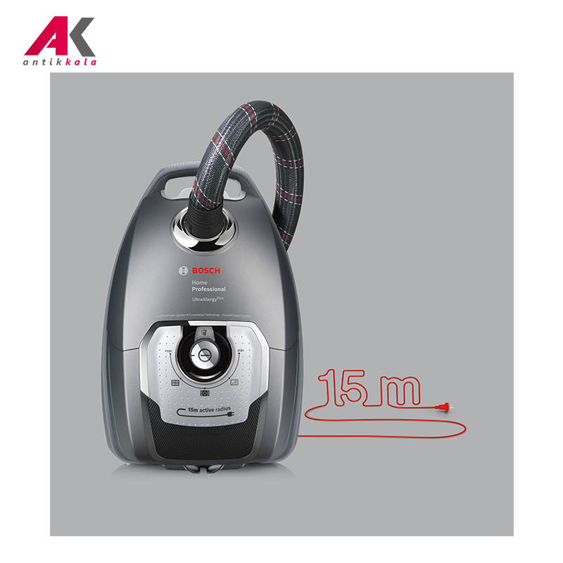 جاروبرقی بوش مدل BGL8PRO5IR از سری PRO بوش ساخت کشور آلمان میباشد، موتور جاروبرقی BGL8PRO5IR کمپرسور است که بسیار قدرتمند میباشد که توان مکش زیادی را ایجاد میکند، صدای این دستگاه بسیار کم است. فیلتر این جاروبرقی تمام گرد و غبار را به خوبی به خود جذب میکند و مانع از پخش شدن در محیط میشوند، این قابلیت مناسب افرادی است که آلرژی و حساسیت دارند. همچنین این فیلترها قابلیت شستشو دارند. لوله خرطومی دستگاه باکیفیت و به صورت کنفی بافته شده است. کیسه جارو برقی BGL8PRO5IR با ظرفیت خوبی که دارد میتواند تا مدت ها از آن استفاده نمود و پس از پر شدن کیسه، توسط نشانگر پر بودن مخزن تعبیه شده روی بدنه شما را مطلع می سازد. از طریق 4 چرخ زیر دستگاه می توانید دستگاه را به راحتی و بدون صرف کمترین انرژی حرکت دهید. این جاروبرقی دارای 3 سری بوده که یک سری پارویی می باشد و مناسب برای سطوح صاف مانند فرش، موکت و پارکت است، سری کوچک برای گردگیری مبلمان و وسایل ظریف طراحی شده و یک سری برس دار نیز همراه دستگاه ارائه شده است. سری های دستگاه به همراه 4 پاکت یکبار مصرف درون کیف نگهداری ارائه شده اند.
