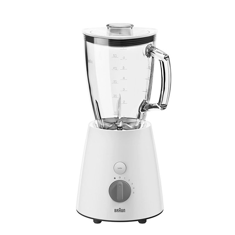 مخلوط کن براون مدل BRAUN JB3060 WHS، با توان 800 وات و تعداد تنظیمات سرعت در 5 درجه متفاوت از سری تولیدات این برند است. وجود پارچ مثلثی با گردش ترکیبی کارآمد، از طریق ایجاد جریان چرخشی افقی و عمودی کارایی را افزایش داده و موجب ارائه بهترین عملکرد در ایجاد ترکیب ممکن میشود. وجود عملکرد Turbo نهایت سرعت برای مخلوط کردن بافت های بیشتر از مواد غذایی را منجر میشود. برخورداری از پارچ با شیشه ای مقاوم در برابر آسیب پذیری دمایی موجب شده امکان مخلوط کردن انواع سوپ های داغ و یا نوشیدنی های یخ را داشته باشید. وجود تیغه هایی 4 پره از جنس استیل ضد زنگ علاوه بر عملکرد قوی مخلوط کن، فرایند شستشوی تیغه ها را با تفکیک قطعات مخلوط کن از یکدیگر تسهیل بخشیده است. همچنین مخلوط کن براون مدل JB3060 WHS داری درپوشی درجه بندی شده با قابلیت استفاده به عنوان پیمانه اندازه گیری میباشد.