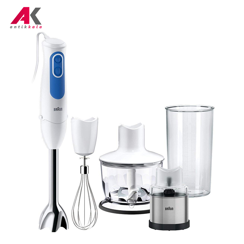 آسیاب ,پیمانه شفاف درجه بندی شده برای مخلوط کردن به همراه درپوش ,خردکن کوچک مناسب سبزیجات، آجیل، پیاز، گوشت، پنیر و … ,همزن بالونی از جنس استیل ضد زنگ برای هم زدن سفیده تخم مرغ، خامه یا مخلوط کردن خمیر پن کیک |
