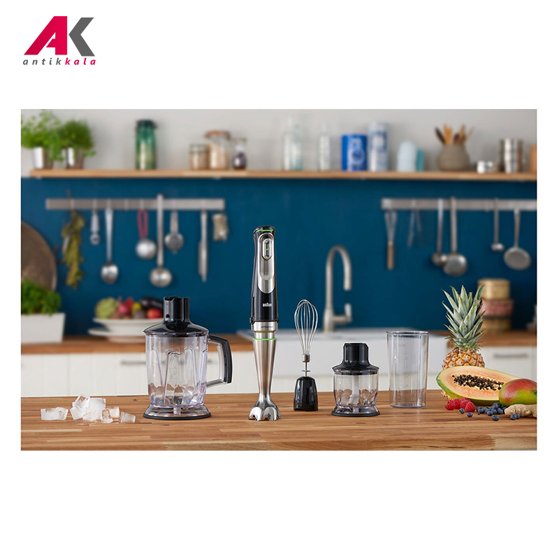 پیمانه شفاف درجه بندی شده برای مخلوط کردن به همراه درپوش ,خردکن بزرگ با قابلیت خردکردن یخ و دیگر مواد غذایی ,خردکن کوچک مناسب سبزیجات، آجیل، پیاز، گوشت، پنیر و … ,همزن بالونی از جنس استیل ضد زنگ برای هم زدن سفیده تخم مرغ، خامه یا مخلوط کردن خمیر پن کیک |