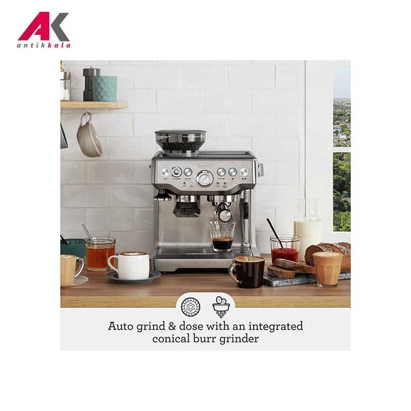 آسیاب یکدست کننده مخروطی (قابل تنظیم برای هر نوع آسیاب) ,دارای فشارسنج برای کنترل بهینه فشار آب جوش، درجه آسیاب شدن و مقدار قهوه ,صفحه گرم نگهدارنده فنجان ها ,قابلیت چرخش نازل بخار به میزان 360 درجه |