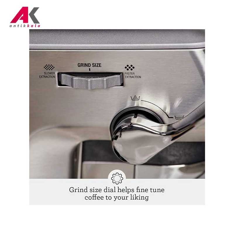 آسیاب یکدست کننده مخروطی (قابل تنظیم برای هر نوع آسیاب) ,دارای فشارسنج برای کنترل بهینه فشار آب جوش، درجه آسیاب شدن و مقدار قهوه ,قابلیت چرخش نازل بخار به میزان 360 درجه ,قابلیت ریختن مستقیم قهوه از آسیاب به فیلتر خارجی بدون دخالت دست ,کنترل خشک نمودن: پس از استخراج قهوه آب های اضافی را از فیلتر پاک می کند ,سیستم کنترل کننده PID برای پایش دقیق دمای آب با دقت 1 درجه |