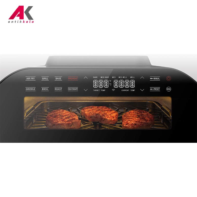 نیازی به نگرانی از چگونگی پیشروی روند پخت و پز نیست. به کمک قطعه کاوشگر دیجیتالی با کنترل دقیق دمای غذا در حین فرایند پخت و پز، وعدهها درست به همان میزان دلخواه شما آماده میشوند. برای تهیه استیک، با اعمال برنامه دلخواه و همچنین انتخاب سطح میزان پخت استیک از آبدار تا کاملا برشته از بین 5 حالت، بدون هیچ حدس و گمانی و با استفاده از تایمر نشاندهنده زمان باقیمانده و قطعه کاوشگر دیجیتال، بی هیچ حدس و گمانی از نتیجه دلخواه لذت خواهید برد. اتمام فرایند پخت از طریق هشدار صوتی اعلام میشود.
