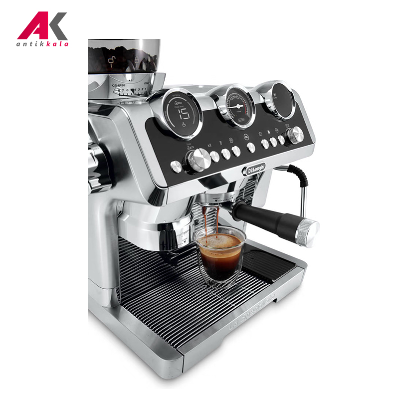 اسپرسوساز دلونگی مدل DELONGHI EC9665.M هیولایی همهکاره از این برند معتبر در صنعت تولید انواع اسپرسوساز بوده که قادر است فرایندهایی متنوع را در قالب یک پکیج بینظیر به علاقمندان به تهیه انواع نوشیدنی پرطرفدار قهوه ارائه دهد. از ابتداییترین مراحل تهیه یک نوشیدنی یعنی آسیاب کردن دانههای قهوه تا تهیه انواع نوشیدنیهای قهوه و یا مشتقات شیر و قهوه از طریق این دستگاه با بالاترین کیفیت ممکن قابل انجام خواهد بود. یک سمفونی بینظیر از طعم و کیفیت را رهبری کنید؛ دمای هر نوشیدنی را تنظیم کنید، دوز میزان آسیاب قهوه خود را تعیین کنید و به صورت دستی اقدام به تهیه مرغوبترین فوم شیر موردنظر خود کنید. سنسور تعبیه شده در آسیاب اسپرسوساز دلونگی مدل EC9665.M موجب ایجاد بافتی یکنواخت و ثابت درون دانههای قهوه شده و در نهایت پودری مطلوب میل را در اختیار شما قرار میدهد. تنظیمات میزان آسیاب دانههای قهوه در 8 سطح متنوع قابل کنترل است. همچنین وجود قابلیت تمپر هوشمند موسوم به Smart Tamping Station این اطمینان را ایجاد میکند که پودر قهوه بهطور کامل و بهدرستی فشرده شده است. امکان کنترل دمای مداوم در حین انجام فرایند دم کشی قهوه، فرایند استخراج نوشیدنی را بهینه خواهد کرد. 6 برنامه پیش فرض جهت تهیه نوشیدنیهای متنوع از طریق فشردن کنترلرهای دکمهای تعبیه شده بر روی بدنه دستگاه، شما را یاری میکند تا نوشیدنی موردنظر را تنها در چند دقیقه تهیه کنید. همچنین میتوانید انتخاب کنید تا فرایند تهیه فوم شیر را به چه صورتی به انجام برسانید؛ به روش دستی و یا روش تمام اتوماتیک. وجود دو سیستم گرمایشی مستقل اعم از سیستم گرمایشی ترموبلاک برای دم کشیدن قهوه و سیستم گرمایش اختصاصی برای تهیه کف شیر و همچنین توان 1450 واتی از اسپرسوساز دلونگی مدل EC9665.M یک قول همهکاره ساخته است. همچنین امکان اعمال فشار بخار 19 باری در کنار توان مذکور موجب شده تهیه نوشیدنی و انجام عملکرد دستگاه با قدرت بالا و در اسرع زمان به انجام برسد. سیستم انحصاری LatteCrema نوشیدنیهای شما را با کف شیر غلیظ و خامهای با ماندگاری طولانی در دمای مناسب تهیه کرده تا دلچسبترین نتایج ممکن را در اختیار شما قرار دهد. پنل کاربری این دستگاه شامل دکمههای روشن/حالت آماده به کار(Standby)، مقدار قهوه، دکمه X2 برای استفاده از 2 فیلتر قهوه، دمای قهوه، دکمه Rinse، دکمه OK برای تایید عملکرد، آب گرم، رسوب زدایی، دکمه My برای ایجاد برنامه نوشیدنی دلخواه و دکمه انتخاب نوع نوشیدنی شامل اسپرسو، آمریکانو، قهوه، کاپوچینو، فلت وایت و لاته است. همچنین این اسپرسوساز پر امکانات دارای نشانگرهایی در جهت مطلع کردن شما از طیف بالایی از عملکردهای موردنظر از جمله نشانگر نوع نوشیدنی، نشانگر نظافت Milk Clean، نشانگر حالت ذخیره انرژی، خالی بودن مخزن آب، خالی بودن مخزن قهوه، هشدار دستگاه و نشانگر دمای قهوه نیز است. وجود ظرف شیر ایدهآل احتیاج شما به مخزنی دیگر برای تهیه فوم شیر را مرتفع کرده است. همچنین برخورداری این اسپرسوساز دلونگی مدل EC9665.M از پرتافیلتری حرفهای موجب شده طعم و عطر اصلی و واقعی نوشیدنی حفظ شود. طراحی فوقالعاده دستگاه با بهرهگیری از متریال استیل ضدزنگ علاوه بر دارا بودن استحکام، جلوه بصری ویژهای را به آن بخشیده است. تا جایی که این مدل از اسپرسوساز توانسته جایزه بهترین طراحی را از جشنواره استرالیایی Good Design Award در سال 2021 کسب کند. امکاناتی نظیر برخورداری از صفحه گرم نگهدارنده فنجان، قلاف تهیه قهوه با دو نازل با امکان تهیه 2 فنجان نوشیدنی، سیستم ایمنی با خاموش کردن خودکار دستگاه پس از مدت معین و وجود نوار آزمایش برای سختی آب در اقلام جانبی دستگاه، از دیگر امکانات اسپرسوساز دلونگی مدل DELONGHI EC9665.M بهحساب میآیند.