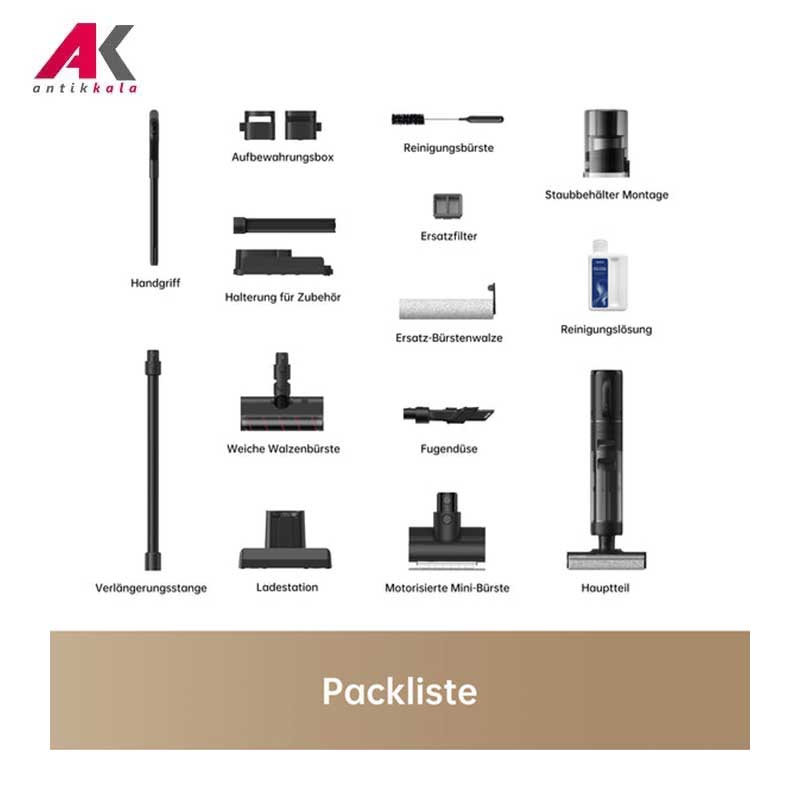آداپتور برق ,برس نظافت دستگاه ,رول برس قابل جایگزین ,نازل ترکیبی برس دار ,برس موتوری مینی براش ,پایه شارژ و شستشوی رول برس ,پایه نگهدارنده جاروشارژی و لوازم جانبی ,مایع شستشو ,موتور و مخزن جاروشارژی ,نازل با برس غلطکی نرم ,نازل جاروشارژی |