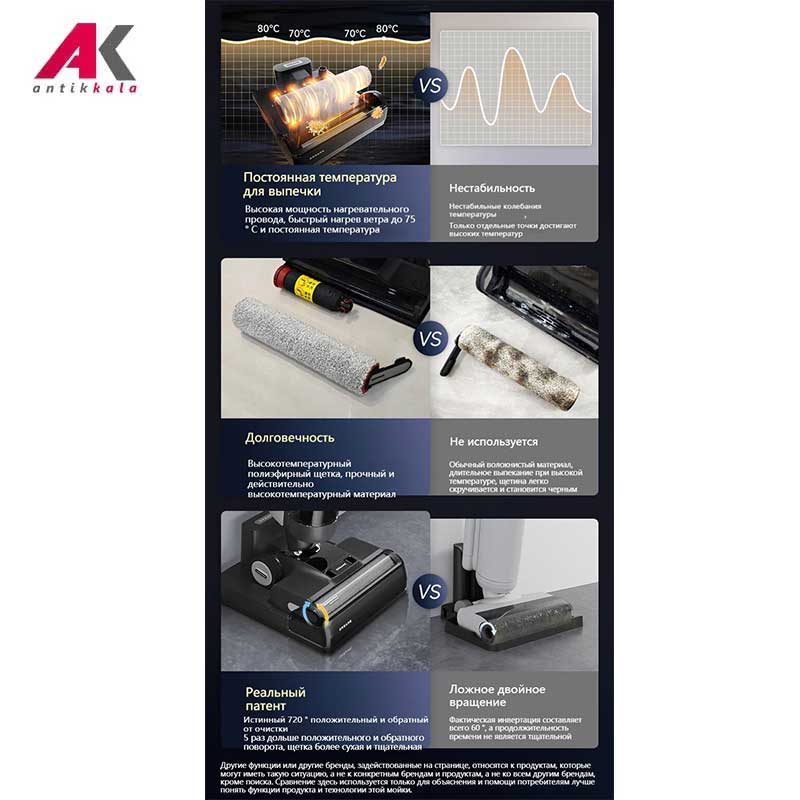فناوری Dual Rotation Self-Cleaning در جاروشارژی و زمین شوی دریم مدل H20 MIX تحولی اساسی در نگهداری و بهداشت برسها ایجاد کرده است. در این سیستم، برسها بهصورت دوطرفه و چرخشی شستوشو داده میشوند تا آلودگیها، مو، ذرات چسبیده و باقیماندههای مایع بهطور کامل از سطح آنها جدا شود. این فرآیند نهتنها عملکرد نظافت را در دفعات بعدی حفظ میکند، بلکه از کاهش کیفیت برسها در طول زمان جلوگیری مینماید. شستوشوی خودکار برسها باعث میشود کاربر نیازی به تماس مستقیم با آلودگی نداشته باشد و فرایند تمیزکاری دستگاه کاملاً بهداشتی انجام شود. این ویژگی بهویژه برای افرادی که حساسیت بالایی به نظافت دارند یا از دستگاه بهصورت روزانه استفاده میکنند، اهمیت زیادی دارد.
