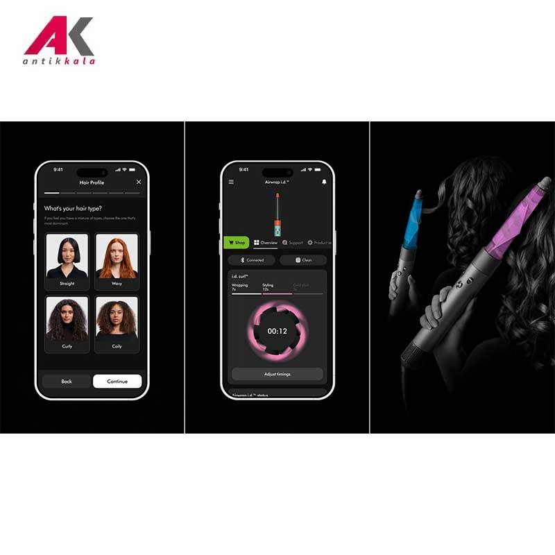 فناوری اتصال به گوشی هوشمند از طریق بلوتوث و ایجاد پروفایل شخصی در اپ مخصوص برای تطبیق پذیری کامل روند فرایند خشک کردن و مدل دادن ,فناوری عملکرد 6 کاره: خشک کردن، فر کردن، موج دادن، صاف کردن، حجم دادن و کاهش وز و درخشندگی موها |