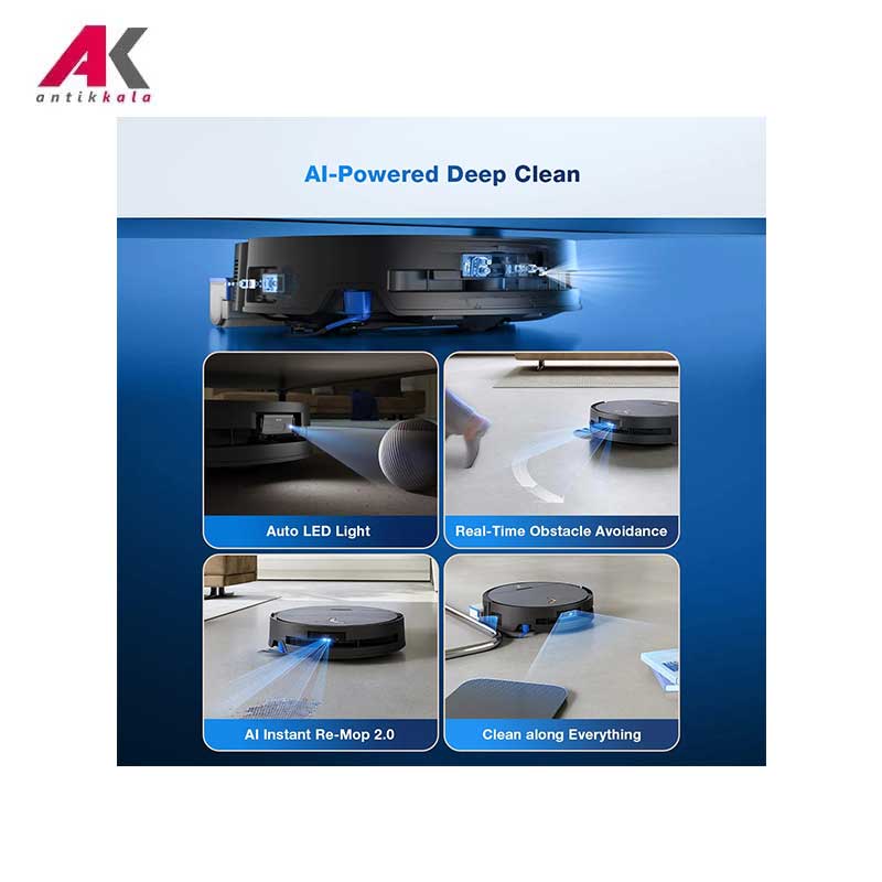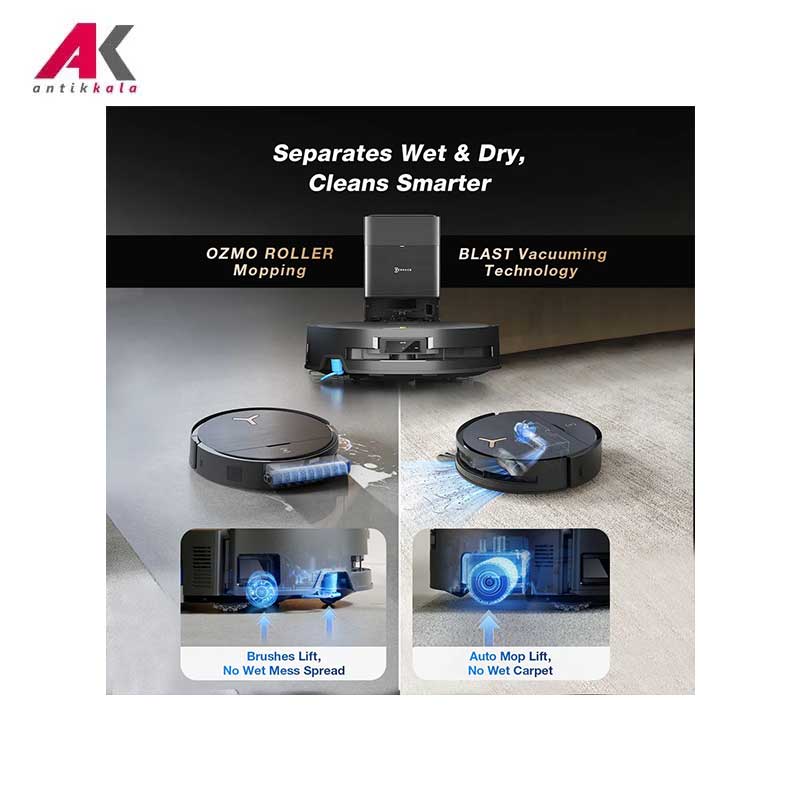 AI Object Recognition: تشخیص هوشمند موانع با هوش مصنوعی ,OZMO™ Turbo 2.0: سیستم شستشوی دو پد چرخان با فشار که موجب پاک شدن لکه های سرسخت میشود ,برخورداری از EV-Grade باتری استاندارد خودروهای برقی در جارو رباتیک ,حرکت Y-Shaped Cleaning: الگوریتمی شبیه شستشوی دست برای رسیدن به تمیزی قوی تر از حرکت خطی ساده |