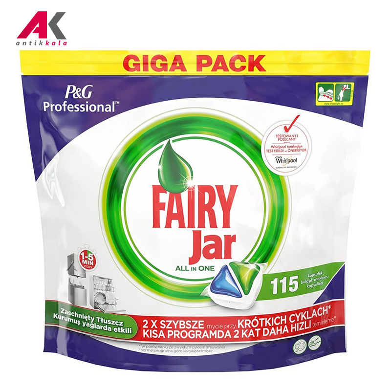 قرص ماشین ظرفشویی حرفه ای All in One فیری، یک راه حل کامل است که بطور خاص برای شستشوی روزمره در ماشین ظرفشویی طراحی شده است. قرص ماشین ظرفشویی فیری، شوینده ای فوق العاده قوی و بی نظیر است که تحت هر شرایطی بهترین نتیجه را در شستشو فراهم خواهد کرد. قرص فیری نه تنها به سرعت حل شده و به طور موثر چربی های خشک شده را از بین می برد، از ظروف نقره محافظت می کند و به فلزات درخشندگی می دهد، و ظاهری خیره کننده به کارد و چنگال های استیل ضد زنگ می دهند و همچنین باعث افزایش عملکرد شستشو و عملکرد نمک می شود. قرص فیری در یک چرخه کوتاه در مقایسه با یک چرخه معمولی دو برابر سریعتر تمیز می کند. می توانید از قرص فیری در ماشین ظرفشویی با چرخه کوتاه (1-5 دقیقه) استفاده کنید. قرص All in One فیری 2 برابر سریعتر از قرص های سخت حل می شود.