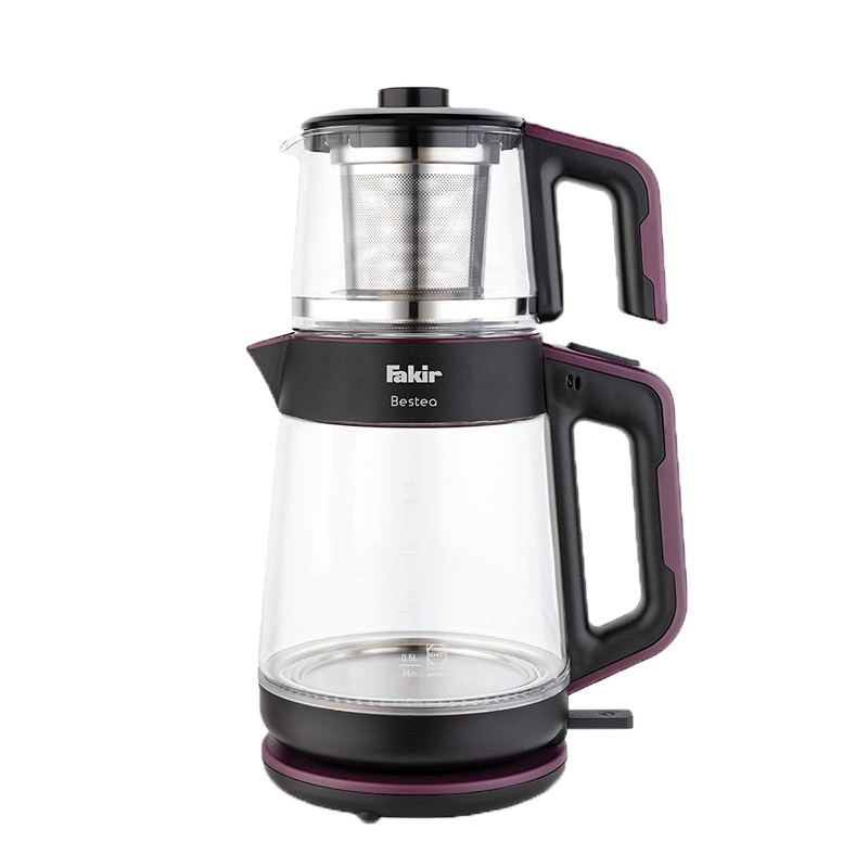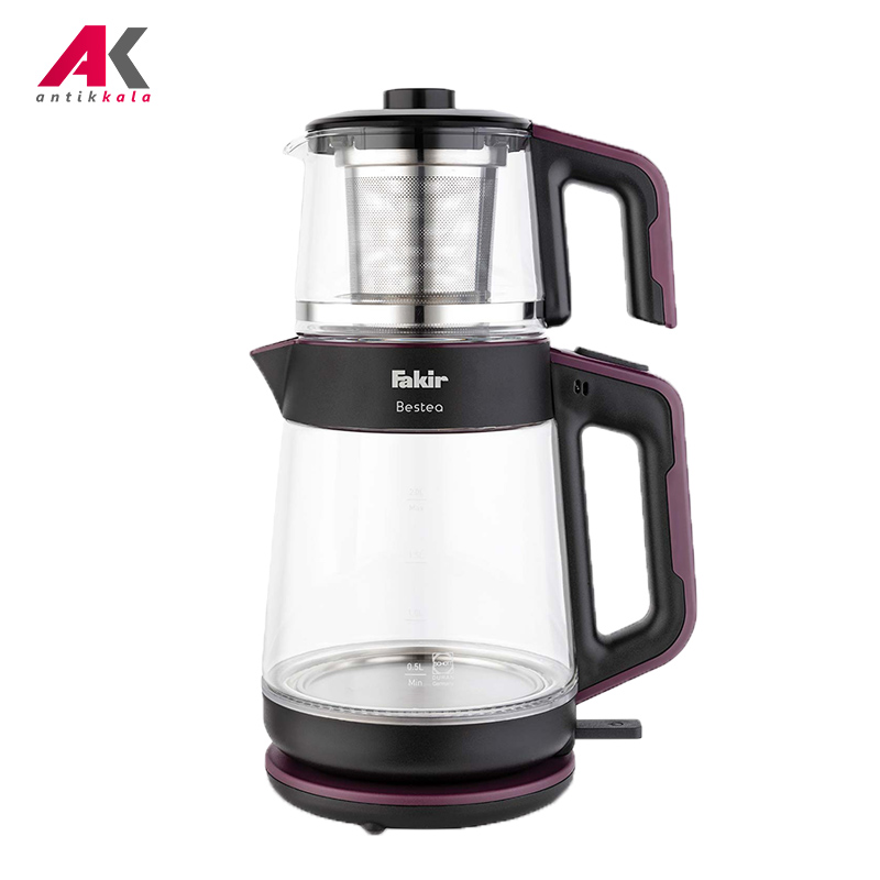 چای ساز فکر مدل FAKIR BESTEA دستگاهی کارا و همچنین زیبا در جهت تهیه روزمره این نوشیدنی پرطرفدار بوده و گزینهای ایدهآل برای آشپزخانه شما به حساب میآید. نیاز به صرف چای در وعدهها و میان وعدههای روزانه نیاز به وجود دستگاهی جهت انجام سریع فرایند دم آوری آن را در هر محیط اعم از منزل و یا محیط کار بیش از همیشه ایجاب کرده است. توان 1900 واتی این چای ساز با برخورداری از سیستم گرمایشی المنت حرارتی مخفی فرایند دم آوری چای را برای دستیابی به بهترین نتایج ممکن به انجام میرساند. مکانیزم کارکرد چای ساز BESTEA فکر از طریق قرارگیری قوری بر روی کتری صورت میپذیرد. بخش مربوط به کتری دارای ساختی از متریال پلاستیکی و مدرج بوده که حجمی به میزان 2 لیتر آب را در خود جای میدهد. قسمت دیگر این چای ساز مربوط به قوری است که از متریال شیشه ساخته شده و دارای میزان حجم 1 لیتر است. دسته هر دو قسمت دستگاه شامل کتری و قوری نیز از پلاستیک مقاوم در برابر حرارت تشکیل شده است. انجام فرایند جوش آمدن آب از طریق فشردن دکمه تعبیه شده در قسمت بالایی دسته کتری صورت میگیرد. برای طرفداران نوشیدنی چای عطر و رایحه این نوشیدنی از درجه اهمیت بالایی برخوردار است؛ تعبیه فیلتر استیل در قوری چای ساز فکر مدل BESTEA ضمن جلوگیری از نفوذ تفاله چای به داخل نوشیدنی، عطر و طعم واقعی این نوشیدنی را حفظ خواهد کرد. با توجه به قابلیت گرم نگهدارندگی این چای ساز قادرید نوشیدنی خود را تا مدت زمان بیشتری پس از فرایند دم آمدن در دمای ایدهآل سرو و نوشیدن حفظ کنید. همچنین پایه نگهدارنده کتری با قابلیت چرخش 360 درجهای امکان دسترستی آسان به تمامی نقاط آن را به راحتی میسر میکند. در صورت نبود آب کافی درون کتری سیستم ایمنی چای ساز فکر مدل BESTEA با قطع فرایند سیستم گرمایشی، عملکرد دستگاه را متوقف کرده و چای ساز را به طور خودکار خاموش میکند. جابجایی و حمل این چای ساز با توجه به وزن سبک آن بهآسانی و بدون دردسر قابل انجام است. وجود محفظه مربوط به جمع آوری کابل برق نظم قرار دهی دستگاه را در هر قسمت دلخواه از آشپزخانه منجر میشود. تمامی بخشهای پلاستیکی به کار رفته در ساخت این چای ساز فاقد ماده شیمیایی مضر BPA بوده که این امر سلامت نوشیدنی تهیه شده را تضمین میکند. امکان شستشوی آسان دستگاه پس از هربار انجام فرایند دیگر ویژگی چای ساز فکر مدل FAKIR BESTEA به شمار میآید. گفتنی است این چای ساز در رنگهای سفید، مشکی، قرمز و بنفش ساخته شده و به بازار عرضه میشود.