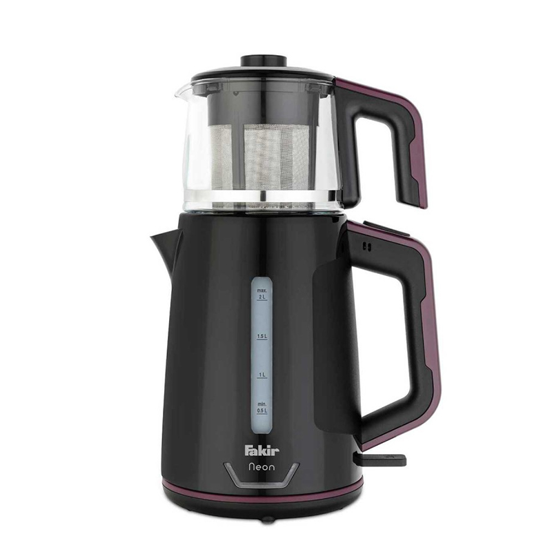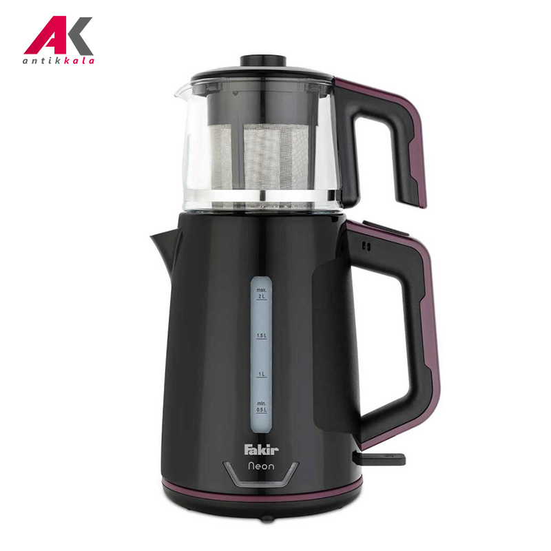چای ساز فکر مدل FAKIR NEON دستگاهی کارا و همچنین زیبا در جهت تهیه روزمره این نوشیدنی پرطرفدار بوده و گزینهای ایدهآل برای آشپزخانه شما به حساب میآید. نیاز به صرف چای در وعدهها و میان وعدههای روزانه نیاز به وجود دستگاهی جهت انجام سریع فرایند دم آوری آن را در هر محیط اعم از منزل و یا محیط کار بیش از همیشه ایجاب کرده است. توان 1800 واتی این چای ساز با برخورداری از سیستم گرمایشی المنت حرارتی مخفی فرایند دم آوری چای را برای دستیابی به بهترین نتایج ممکن به انجام میرساند. مکانیزم کارکرد چای ساز NEON فکر از طریق قرارگیری قوری بر روی کتری صورت میپذیرد. بخش مربوط به کتری دارای ساختی از متریال پلاستیکی و مدرج بوده که حجمی به میزان 2 لیتر آب را در خود جای میدهد. قسمت دیگر این چای ساز مربوط به قوری است که از متریال شیشه ساخته شده و دارای میزان حجم 1 لیتر است. دسته هر دو قسمت دستگاه شامل کتری و قوری نیز از پلاستیک مقاوم در برابر حرارت تشکیل شده است. انجام فرایند جوش آمدن آب از طریق فشردن دکمه تعبیه شده در قسمت بالایی دسته کتری صورت میگیرد. برای طرفداران نوشیدنی چای عطر و رایحه این نوشیدنی از درجه اهمیت بالایی برخوردار است؛ تعبیه فیلتر استیل در قوری چای ساز فکر مدل NEON ضمن جلوگیری از نفوذ تفاله چای به داخل نوشیدنی، عطر و طعم واقعی این نوشیدنی را حفظ خواهد کرد. با توجه به قابلیت گرم نگهدارندگی این چای ساز قادرید نوشیدنی خود را تا مدت زمان بیشتری پس از فرایند دم آمدن در دمای ایدهآل سرو و نوشیدن حفظ کنید. همچنین پایه نگهدارنده کتری با قابلیت چرخش 360 درجهای امکان دسترستی آسان به تمامی نقاط آن را به راحتی میسر میکند. در صورت نبود آب کافی درون کتری سیستم ایمنی چای ساز فکر مدل NEON با قطع فرایند سیستم گرمایشی، عملکرد دستگاه را متوقف کرده و چای ساز را به طور خودکار خاموش میکند. جابجایی و حمل این چای ساز با توجه به وزن سبک آن بهآسانی و بدون دردسر قابل انجام است. وجود محفظه مربوط به جمع آوری کابل برق نظم قرار دهی دستگاه را در هر قسمت دلخواه از آشپزخانه منجر میشود. تمامی بخشهای پلاستیکی به کار رفته در ساخت این چای ساز فاقد ماده شیمیایی مضر BPA بوده که این امر سلامت نوشیدنی تهیه شده را تضمین میکند. امکان شستشوی آسان دستگاه پس از هربار انجام فرایند دیگر ویژگی چای ساز فکر مدل FAKIR NEON به شمار میآید. گفتنی است این چای ساز در رنگهای سفید و مشکی-بنفش ساخته شده و به بازار عرضه میشود.