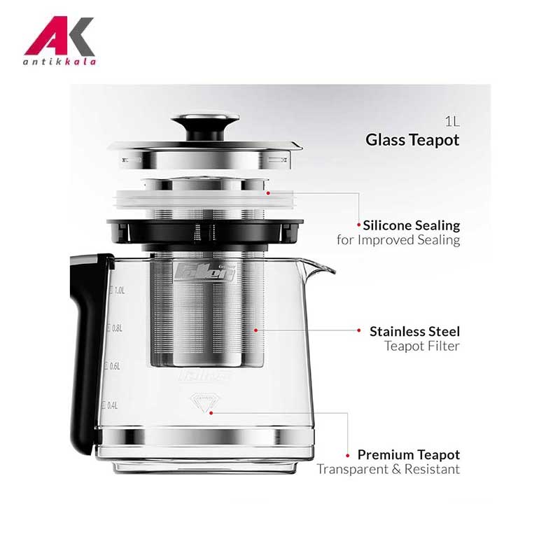 برخورداری از سیستم کنترل دمایی ترموستات Strix ,امکان تهیه قهوه دمی ,برخورداری از نشانگر عقربه ای دما روی کتری ,بهره گیری از سیستم گرمایش و دم آوری سریع ,دارای حلقه سیلیکونی جهت آب بندی بهتر قوری |