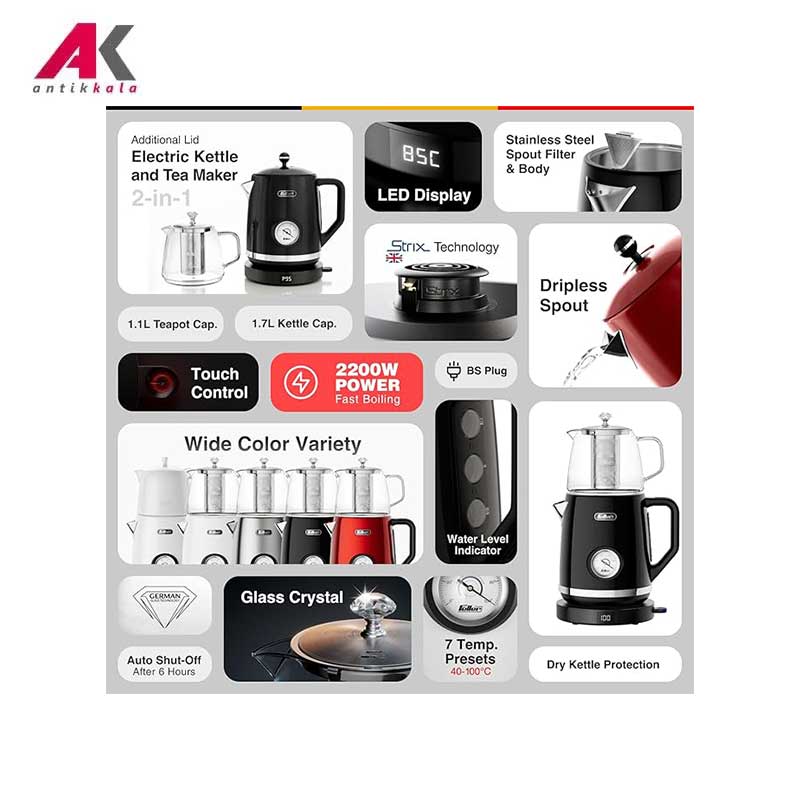سیستم حفاظت از خشک جوشیدن کتری: خاموش شدن خودکار درصورتی که کتری به صورت تصادفی روشن شود یا آب کافی در آن وجود نداشته باشد |