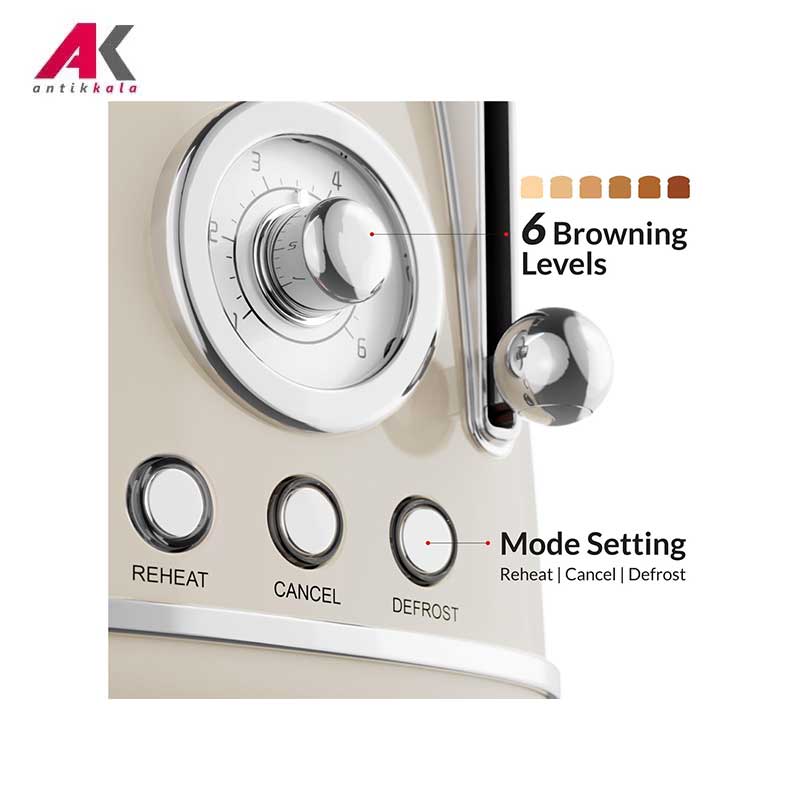 دکمه برای بالا بردن نان ,دکمه توقف ,دکمه کنترل چرخشی با 6 حالت کنترل میزان برشته شدن نان ,دکمه گرم کردن مجدد ,دکمه یخ زدایی |