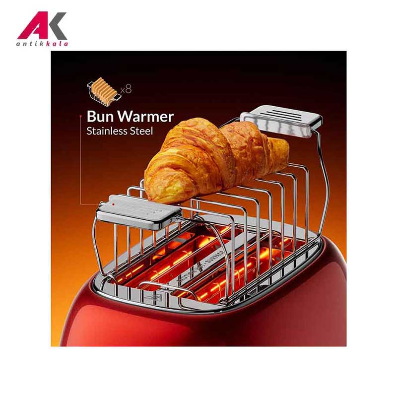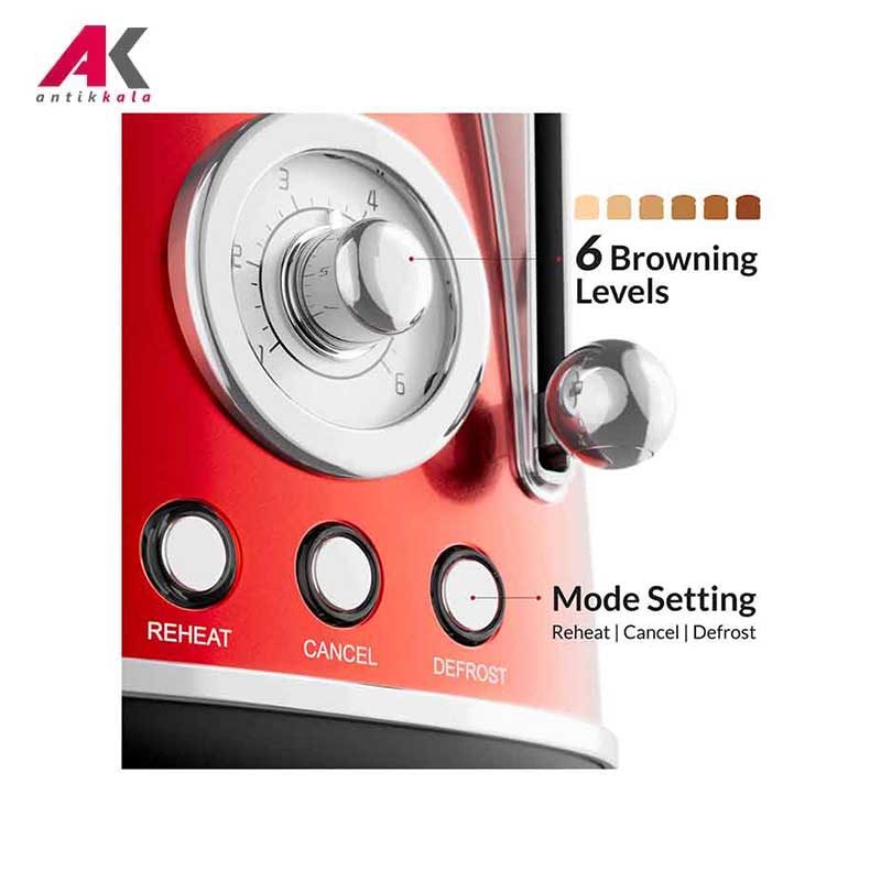 دکمه برای بالا بردن نان ,دکمه توقف ,دکمه کنترل چرخشی با 6 حالت کنترل میزان برشته شدن نان ,دکمه گرم کردن مجدد ,دکمه یخ زدایی |