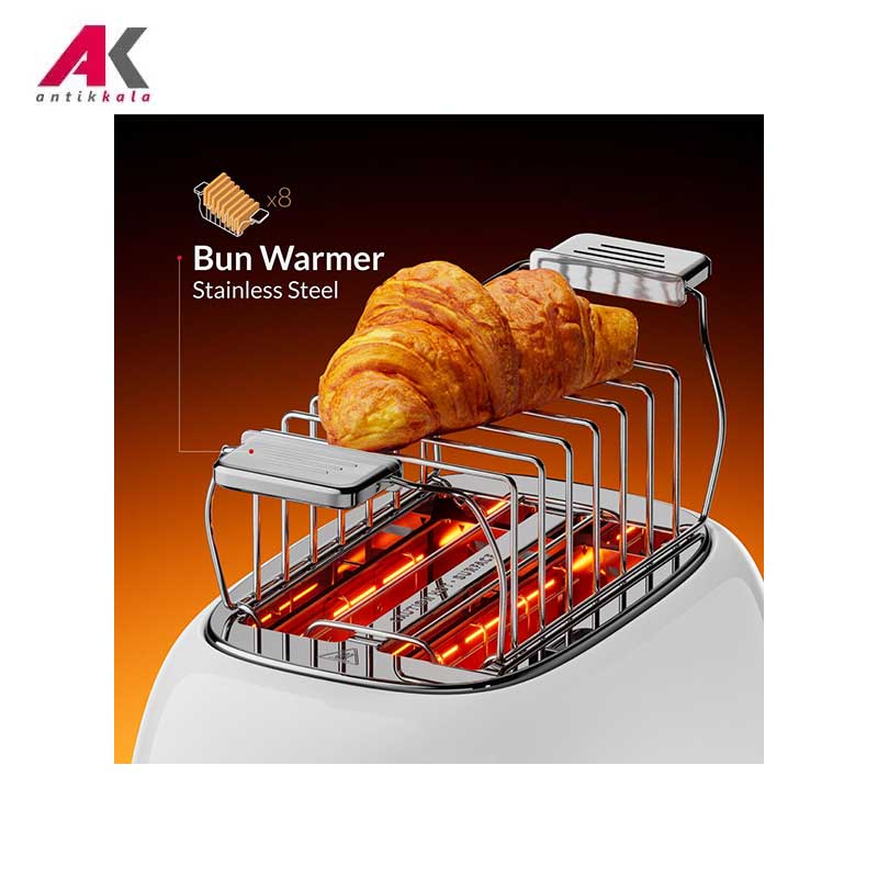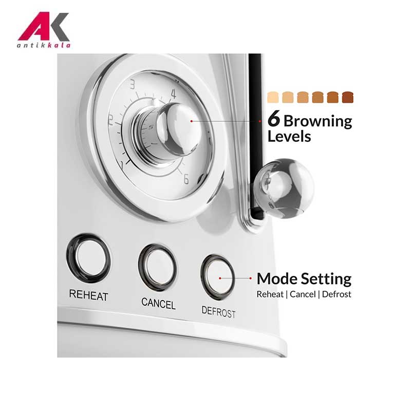 دکمه برای بالا بردن نان ,دکمه توقف ,دکمه کنترل چرخشی با 6 حالت کنترل میزان برشته شدن نان ,دکمه گرم کردن مجدد ,دکمه یخ زدایی |