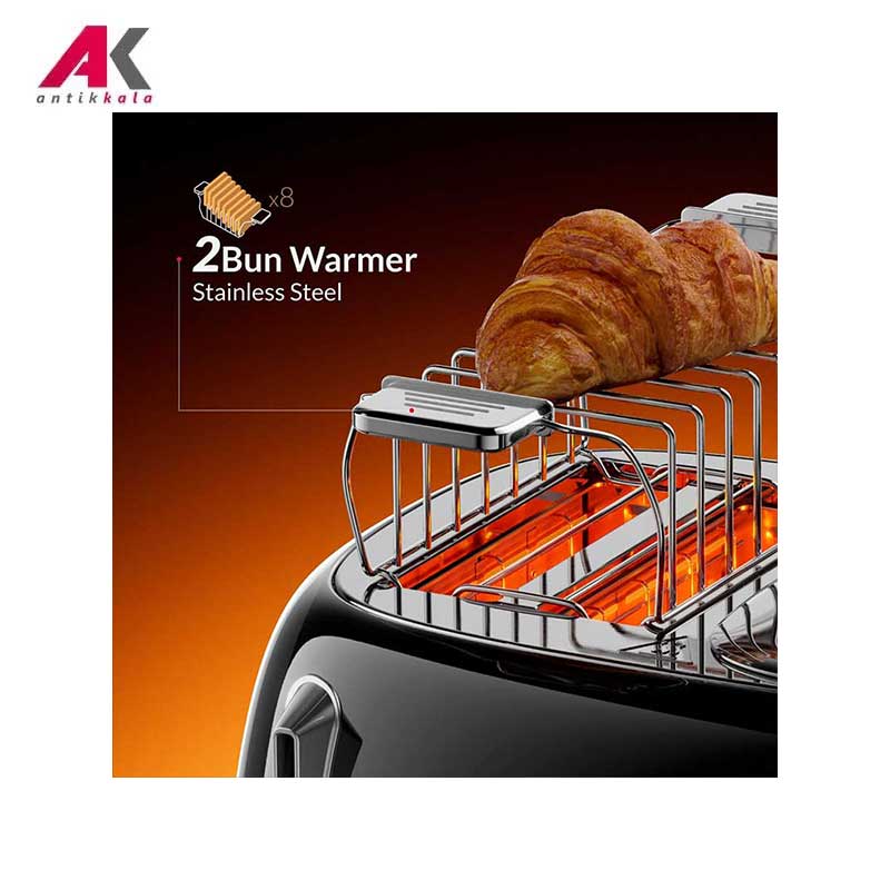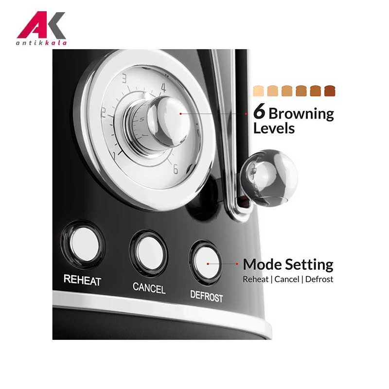 دکمه برای بالا بردن نان ,دکمه توقف ,دکمه کنترل چرخشی با 6 حالت کنترل میزان برشته شدن نان ,دکمه گرم کردن مجدد ,دکمه یخ زدایی |