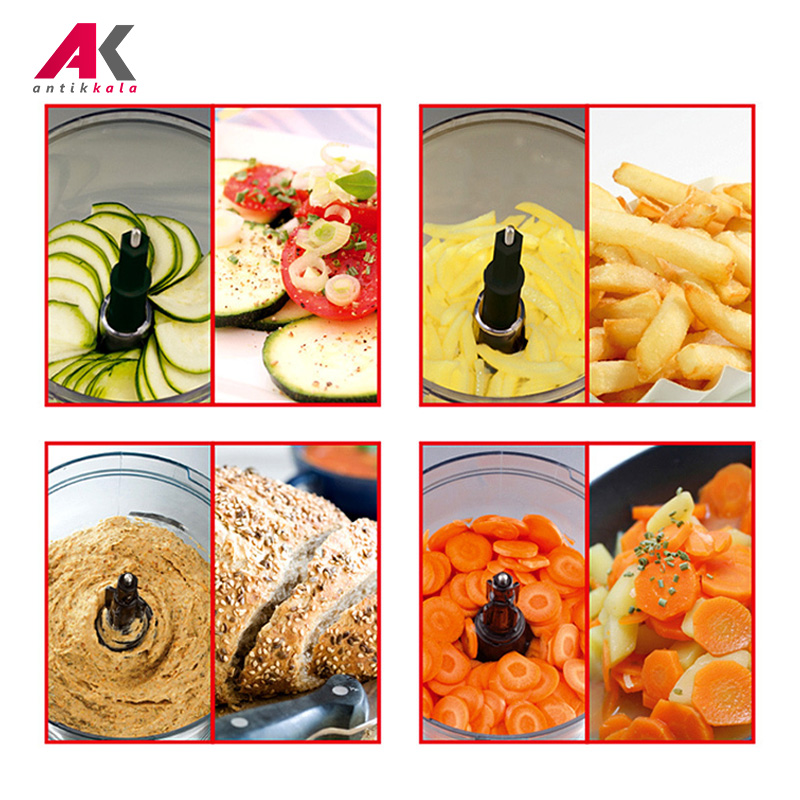 قابلیت خرد کردن میوه و سبزیجات و پیاز، پنیر، گوشت، تهیه انواع خمیرها، تهیه انواع نوشیدنی، میلک شیک، بستنی، غذای کودک، سوپ، سس ها در کمترین زمان |