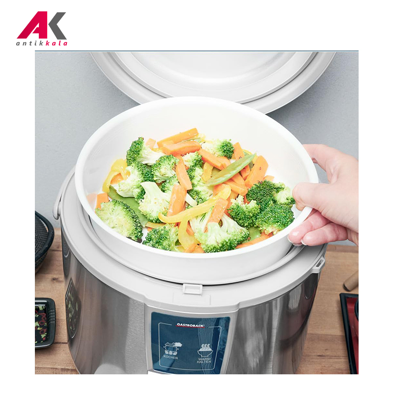 مولتی کوکر گاستروبک مدل 42518 دستگاهی جمعوجور برای تهیه برنج و بخارپز کردن انواع سبزیجات موردعلاقه شما است. برای ما ایرانیها که تهیه برنج در قالب پلو و یا کته در طیف بسیار متنوعی از وعدهها جای میگیرد وجود یک پلوپز باکیفیت که بتواند برنج را به شکلی مطلوب و درست مشابه روشهای سنتی پخت آماده کند ضروری به نظر میرسد. این مولتی کوکر گاستروبک عملکرد گفته شده را به بهترین شکل به انجام میرساند به طوری که به ادعای این کمپانی برنج بدون نگرانی بابت سوخته شدن و همچنین شفته شدن پخته خواهد شد. علاوه بر این با امکان انجام فرایند بخارپز کردن، میتوانید انواع سبزیجات و صیفیجات و حتی قسمتهای دارای بافت نرم گوشت سفید اعم از ماهی و مرغ را با حفظ مواد مغذی برای وعدهها و میان وعدههای رژیمی خود تهیه کنید که این امر با حفظ کامل محتویات مواد معدنی و ویتامینها انجام میشود؛ بنابراین دو عملکرد این مولتی کوکر برند گاستروبک شامل پلوپز و بخارپز میشود.