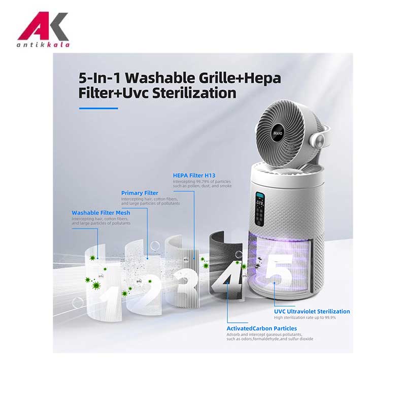 فیلتراسیون 5 مرحله ای: فیلتر مش قابل شستشو – فیلتر اولیه – فیلتر هپا 13 – فیلتر کربن فعال – فیلتر استریلیزاسیون ماورابنفش UVC |