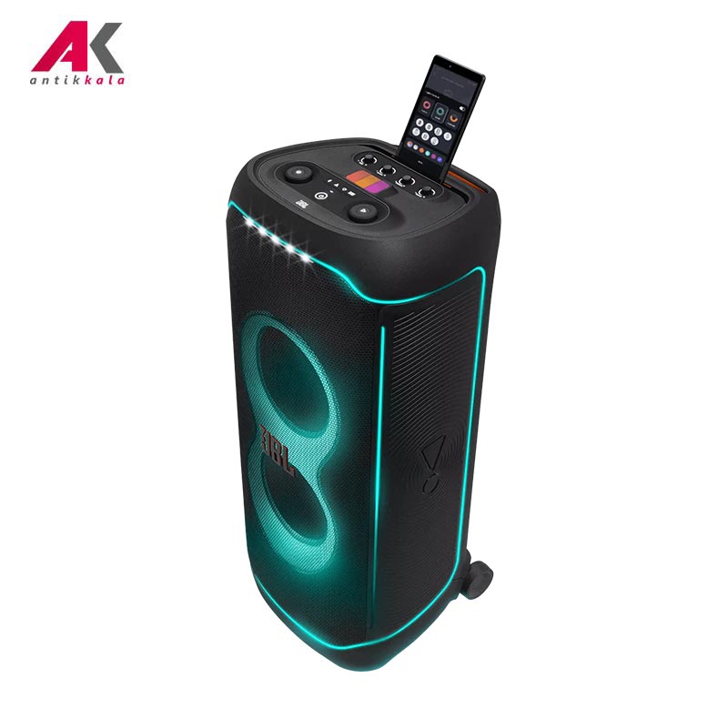تقویت کننده باس – پخش/توقف – تنظیم میزان شدت صدا – تنظیم نور رینگ LED – تنظیم نوع نورپردازی – بلوتوث – اتصال سایر اسپیکرها ,روشن/خاموش – تنظیمات کارائوکه: میکروفون، باس، تریبل، اکو – انتخاب افکت صدایی – دسترسی به پلی لیست موسیقی در اپ JBL One |