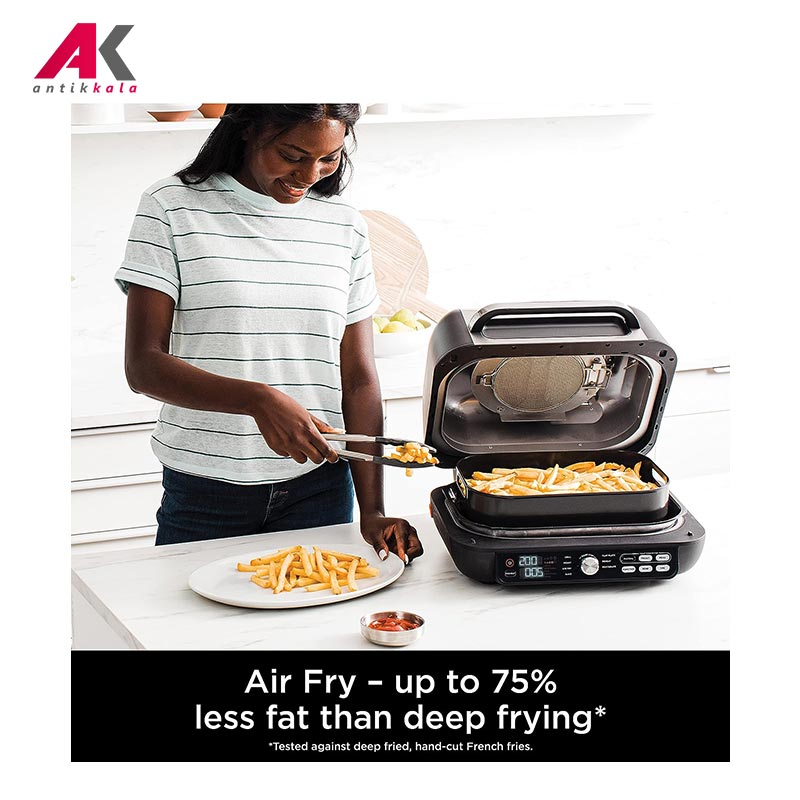 سرخ کن و گریل نوتریکوک مدل AG651 دستگاهی کاربردی برای انجام فرایندهای روزمره آشپزی است. بهکمک این دستگاه قادر خواهید بود با انجام عملکردهای متنوع آشپزی طیف گستردهای از غذاهای دلخواه را تهیه کنید. سیستم گرمایشی این سرخ کن از فناوری گردش هوا استفاده میکند. این سیستم حرارت 260 درجه سانتیگراد را در فضای مخزن پخت به گردش در میآورد. از این طریق مواد غذایی بدون هیچگونه نیاز به چرخش یا هم زدن بهسرعت و بهطور یکنواخت پخته میشود. وجود محفظه قابل جابجایی و قابل شستشو در زیر درب دستگاه، موجب حفظ نظافت المنت گرمایشی میشود و از پیچیدن دود و بو در فضای آشپزخانه جلوگیری میکند. این محصول دارای 7 عملکرد خودکار آشپزی است. گریل، سرخ کن، Flat Plate مناسب برای پخت انواع غذاها، پنکیک ها و پیتزای خانگی، پخت، کباب کردن، گرم کردن مجدد و خشک کردن از جمله برنامههای پیشفرض این دستگاه بهشمار میآیند. فرایند سرخ کردن با توجه به تعبیه تکنولوژی گردش حرارت با کاهش میزان 75 درصدی مصرف روغن به نسبت روشهای سنتی انجام میشود. ظرفیت مخزن این سرخ کن و گریل نوتریکوک 3.8 لیتر است. با این ظرفیت امکان تهیه وعدههای غذایی مناسب برای جمع 4 تا 6 نفره را خواهید داشت. با استفاده از بشقاب گریل میتوانید در یک وعده 6 عدد همبرگر را بهبهترین شکل بپزید. این دستگاه نیز به مانند مدل AG551 برند نوتریکوک از یک کاوشگر دیجیتالی میزان پخت بهره میبرد. به کمک این قطعه میتوانید در هرلحظه از دمای مواد غذایی خود مطلع شده و فرایند پخت را درست به همان میزان دلخواه خود پیش ببرید. علاوه بر این هیچ حدس و گمانی مبنی بر تکمیل پخت مواد غذایی وجود نخواهد داشت. پس از تکمیل فرایند پخت، دستگاه با اعلام هشدار صوتی شما را مطلع میکند تا مواد غذایی را برای سرو از مخزن خارج کنید. لوازم جانبی این سرخ کن و گریل نوتریکوک علاوه بر پروب یا کاوشگر دیجیتال و همچنین محافظ اسپلتر، شامل 1 عدد بشقاب گریل، 1 عدد سبد کریسپر و 1 عدد صفحه تخت میشود. گفتنی است کلیه ظروف دستگاه قابلیت شستشو در ماشین ظرفشویی را دارد.