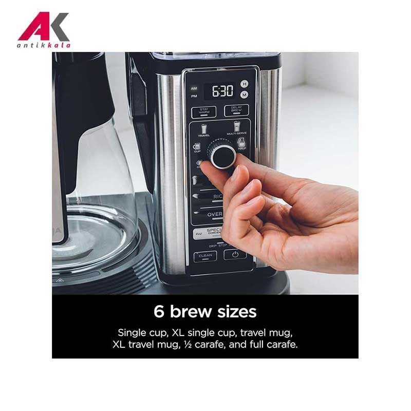 ویژگی قطع جریان ریختن قهوه در هر لحظه دلخواه یکی از امکانات هوشمند این دستگاه است که با نام Drip Stop شناخته میشود. فرض کنید در حالیکه هنوز فرآیند دمآوری کامل نشده، تمایل دارید فنجان خود را پر کنید؛ کافی است تنها با فشردن یک دکمه، جریان قهوه بهصورت موقت قطع شود. این قابلیت باعث میشود بدون نیاز به انتظار، نوشیدنی خود را میل کنید و سپس دستگاه فرآیند دمآوری را ادامه دهد. سیستم Drip Stop از ریزش قطرات بعد از خارج کردن قوری جلوگیری میکند، در نتیجه میز یا سطح کار شما تمیز باقی میماند. این قابلیت کوچک اما بسیار کاربردی، تجربه استفاده از دستگاه را راحتتر و تمیزتر کرده است. در مقایسه با قهوهسازهای معمولی که پس از برداشتن قوری همچنان قهوه میچکد، نینجا CM401 با طراحی دقیق خود توانسته این مشکل را بهطور کامل برطرف کند. این ویژگی همچنین برای زمانهایی که عجله دارید یا میخواهید فقط یک فنجان کوچک از قهوه در حال دم را امتحان کنید، بسیار مفید است.