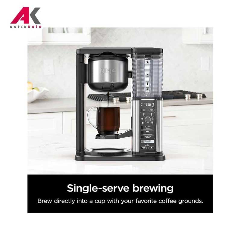 یکی از ویژگیهای کاربردی قهوه ساز نینجا مدل CM401، سیستم Single-Serve Brewing است که امکان دمآوری سریع تنها یک فنجان قهوه را فراهم میکند. در این حالت، دستگاه به صورت هوشمند میزان آب و زمان دمآوری را تنظیم کرده تا در کمترین زمان ممکن، قهوهای تازه و خوشطعم آماده شود. این ویژگی مخصوص افرادی است که همیشه در حال حرکت هستند و نمیخواهند منتظر آماده شدن یک قوری کامل بمانند. با این قابلیت میتوانید تنها در چند دقیقه، یک فنجان قهوه غلیظ، اسپرسو یا حتی قهوه سرد آماده کنید. سیستم Single-Serve Brewing با دقت بالا دما و فشار آب را تنظیم میکند تا در هر بار استفاده، طعم و غلظت نوشیدنی ثابت باقی بماند. از طرفی نینجا این حالت را طوری طراحی کرده که بتوانید از لیوانهای بلند یا فنجانهای قابل حمل نیز استفاده کنید، چرا که ارتفاع خروجی قهوه قابل تنظیم است. این ویژگی به شما امکان میدهد صبحها قبل از خروج از خانه، فنجان سفری خود را پر کرده و روزتان را با انرژی شروع کنید.