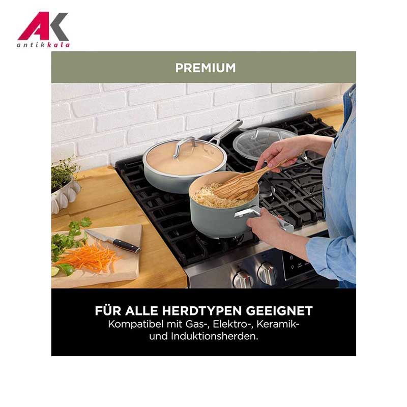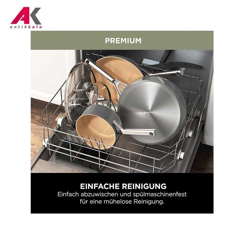 امکان استفاده در فر ,طراحی ایده آل برای توزیع یکنواخت حرارت در قابلمه و تابه به منظور دستیابی به نتایج پخت همگن و فوق العاده |