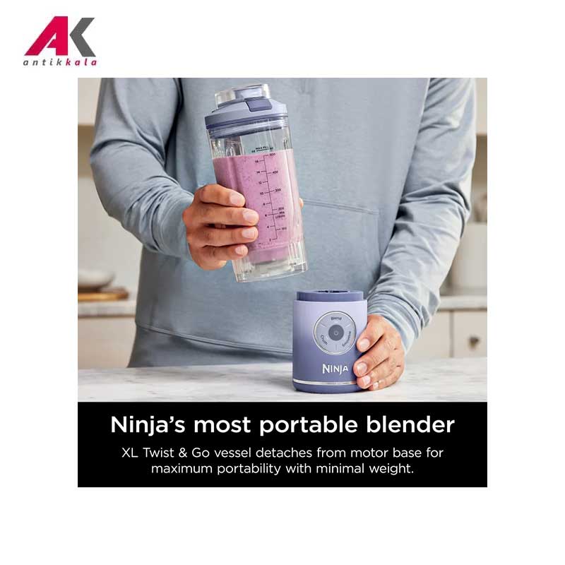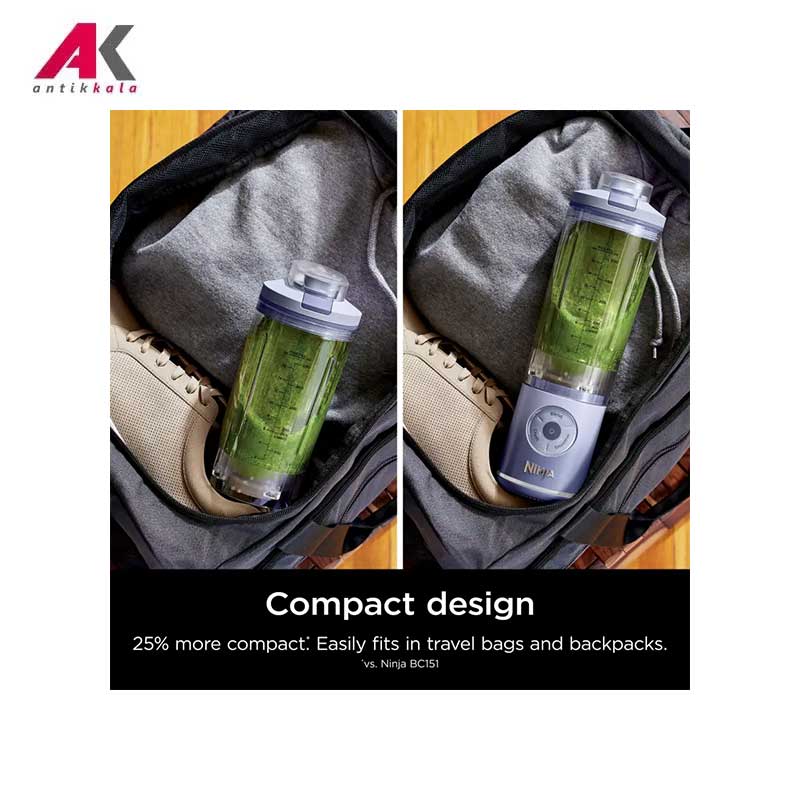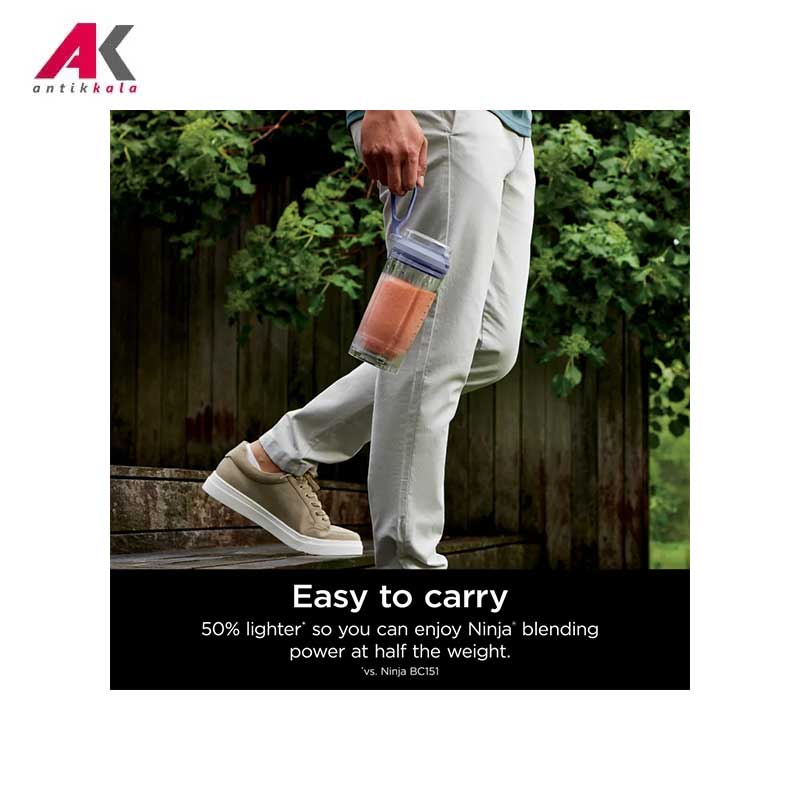 برای دسترسی بسیار آسانتر به نوشیدنی تازه تهیه شده، بخش مربوط به بطری از پایه جدا میشود. این ویژگی در کنار طراحی دستگیره روی بخش درپوش این امکان را مهیا میکند تا بطری را به آسانی در هر محیط دلخواه مثل باشگاه یا محل کمپ با خود به همراه داشته باشید. این دستگاه طوری طراحی شده که برای حمل هیچگونه زحمتی را متوجه کاربر نکند. ابعاد کوچک این مخلوط کن شارژی نینجا موجب شده بتوان در کیف کولی یا ساک دستی با اشغال کمترین فضای ممکن آن را به همراه داشت.