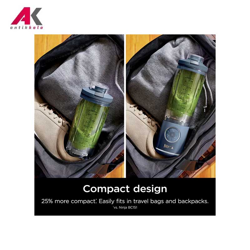 برای دسترسی بسیار آسانتر به نوشیدنی تازه تهیه شده، بخش مربوط به بطری از پایه جدا میشود. این ویژگی در کنار طراحی دستگیره روی بخش درپوش این امکان را مهیا میکند تا بطری را به آسانی در هر محیط دلخواه مثل باشگاه یا محل کمپ با خود به همراه داشته باشید. این دستگاه طوری طراحی شده که برای حمل هیچگونه زحمتی را متوجه کاربر نکند. ابعاد کوچک این مخلوط کن شارژی نینجا موجب شده بتوان در کیف کولی یا ساک دستی با اشغال کمترین فضای ممکن آن را به همراه داشت.