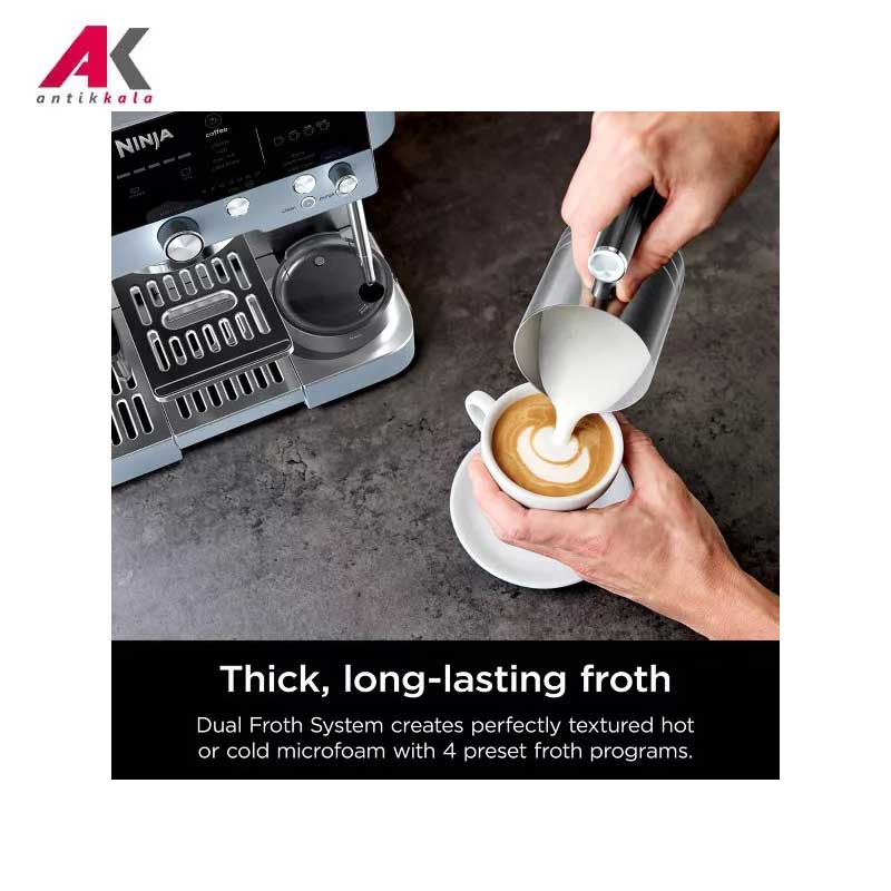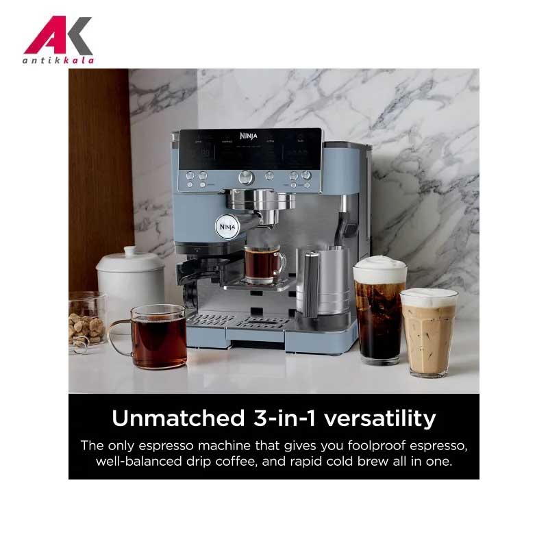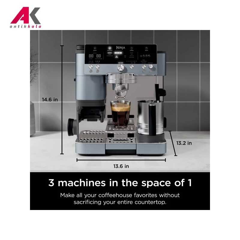 دستگاه 3 در 1: اسپرسوساز، قهوه ساز چکه ای و قهوه سرد دم ,سیستم Dual Froth: برای ترکیب بخار و هم زدن شیر به صورت همزمان برای دستیابی به یک کف شیر با بافت عالی ,عملکرد STRENGTH: تنظیم قدرت دم کشی برای نوع اسپرسو یا قهوه ,قفسه فنجانی قابل تنظیم در سه ارتفاع مختلف با قابلیت جدا شدن برای قرار دادن فنجان های اسپرسو و ماگ های بزرگتر ,مجهز به ترازوی توکار برای تعیین وزن قهوه متناسب با نوشیدنی انتخابی شما |