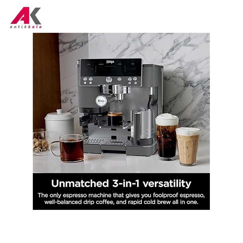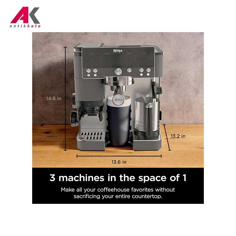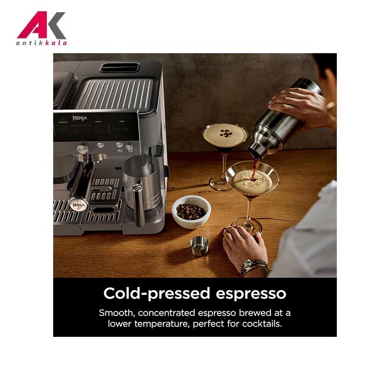 دستگاه 3 در 1: اسپرسوساز، قهوه ساز چکه ای و قهوه سرد دم ,سیستم Dual Froth: برای ترکیب بخار و هم زدن شیر به صورت همزمان برای دستیابی به یک کف شیر با بافت عالی ,عملکرد STRENGTH: تنظیم قدرت دم کشی برای نوع اسپرسو یا قهوه ,قفسه فنجانی قابل تنظیم در سه ارتفاع مختلف با قابلیت جدا شدن برای قرار دادن فنجان های اسپرسو و ماگ های بزرگتر ,مجهز به ترازوی توکار برای تعیین وزن قهوه متناسب با نوشیدنی انتخابی شما |